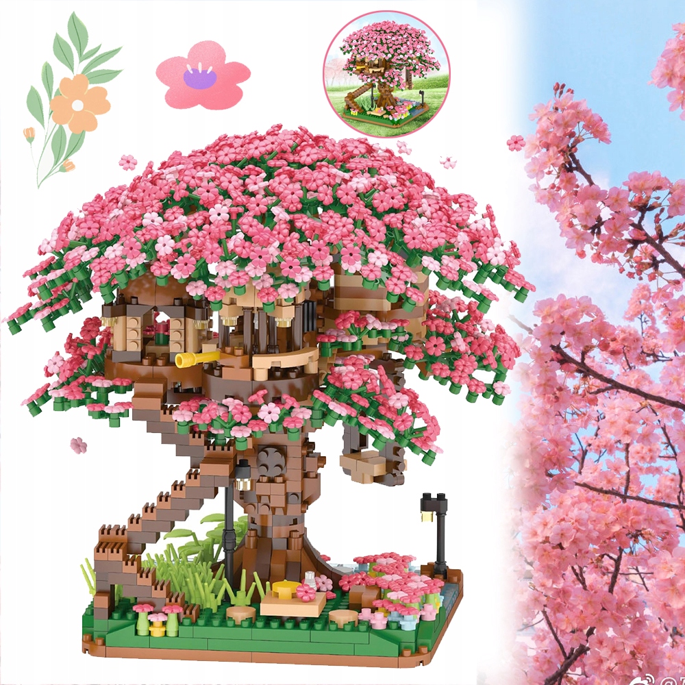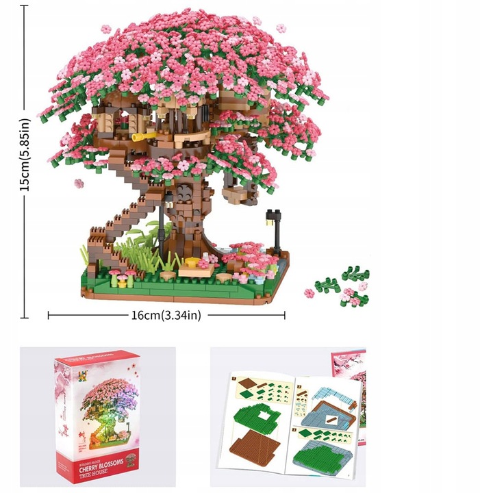 🌸 Домик на дереве Cherry Blossom Tree - Этот набор состоит из 2008 микрокамней. Уникальное сочетание вишневых деревьев и хижин делает строительство более сложным, чем традиционные блоки, и требует больше терпения и внимательности.