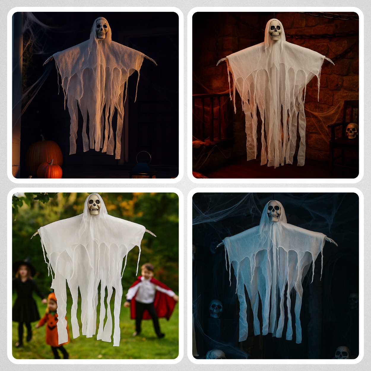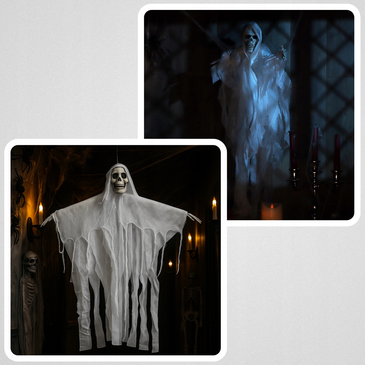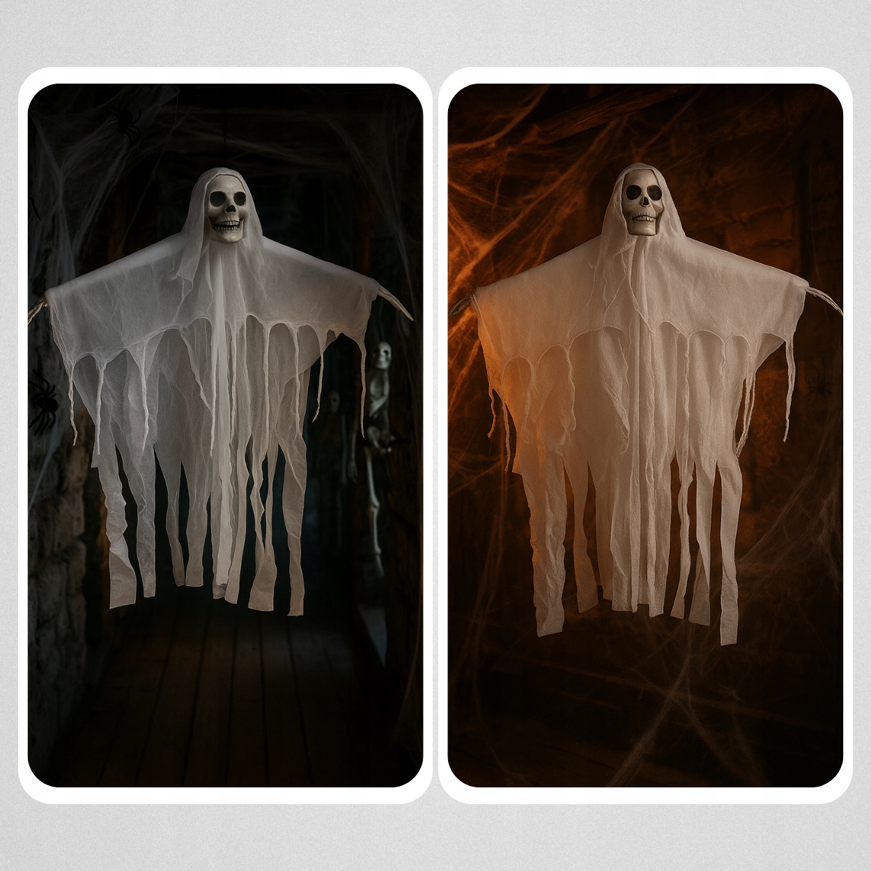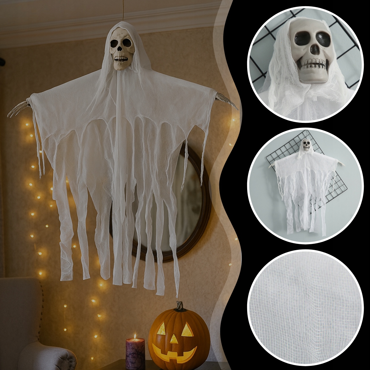 Это украшение в виде висящего привидения с видимым черепом идеальный выбор – легкий, эффектный и готовый преобразить ваш интерьер к Хэллоуину.