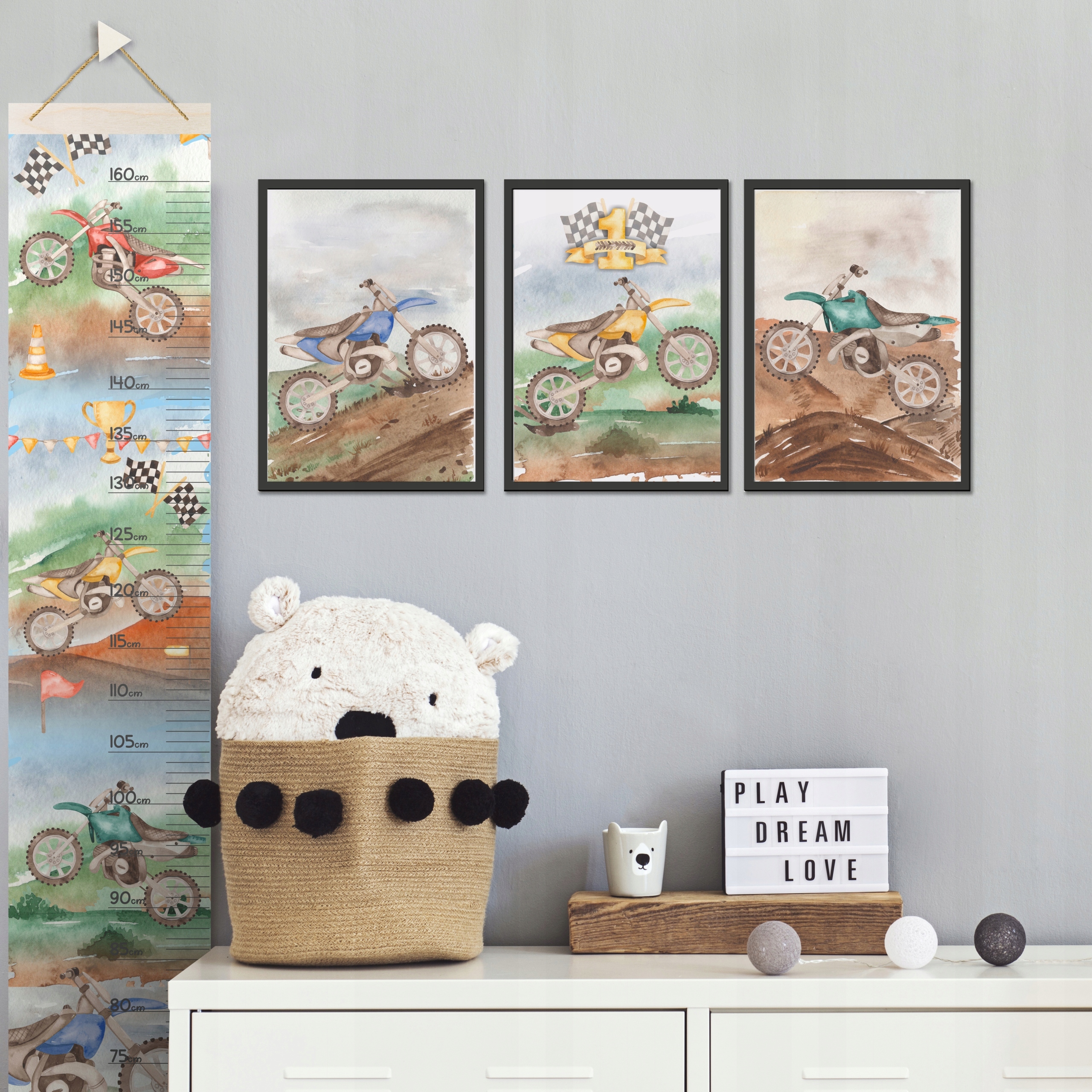 Мера роста с мотивом мотоцикла внедорожника является отличным украшением более молодой комнаты и более старого автомобильного вентилятора. H2>