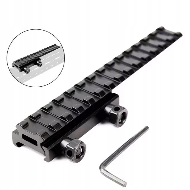 ТАКТИЧЕСКАЯ РАСШИРЕННАЯ БАЗА С ВЫСОКОЙ ПОДСТАВКОЙ, ПЛОСКАЯ ВЕРХНЯ, 145 ММ, 14 НАКОНЕЧНИКОВ ДЛЯ МОНТАЖА НА РЕЙКУ PICATINNY/WEAVER, 20 ММ