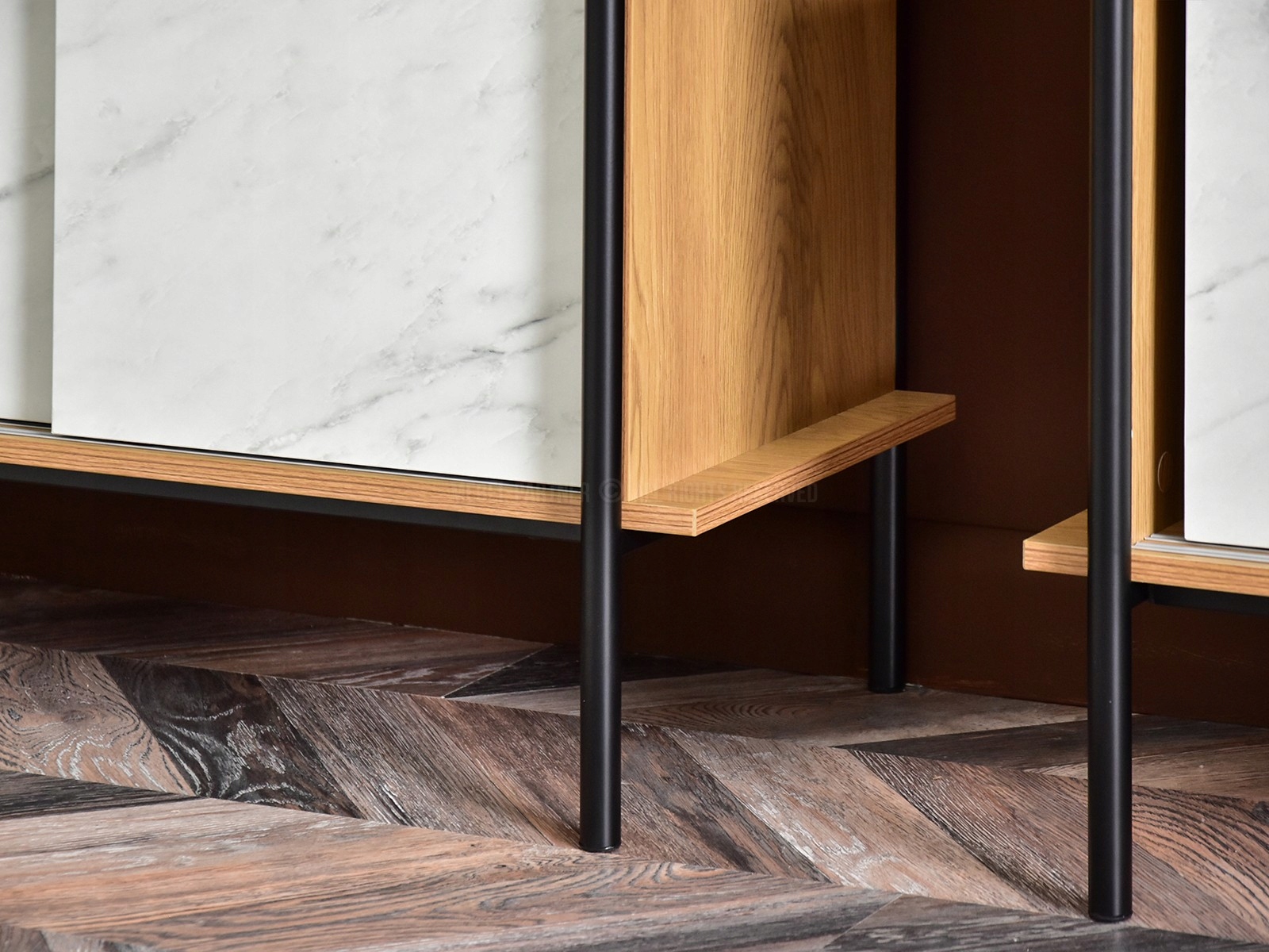 Мечтаете о полке, которая не только разместит ваши вещи, но и добавит индивидуальности вашему интерьеру? Полка ALMA B цвета дуба с акцентом из белого мрамора – уникальное решение, которое поднимет ваше пространство на новый уровень!
