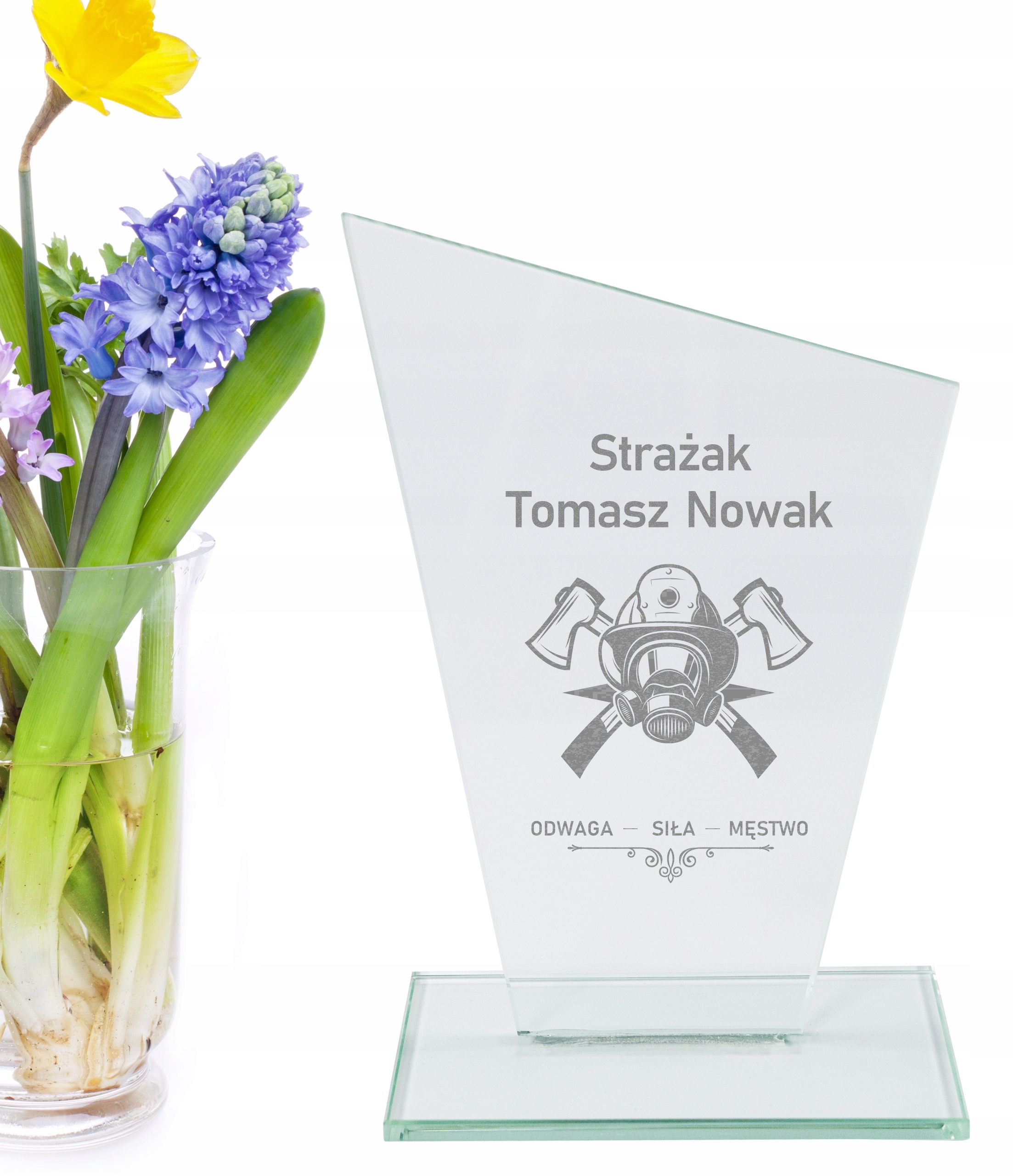 ВИСОКА Статуетка З ГРАВІЮВАННЯМ скляний трофей для пожежного РІЧНИЦЯ ВЕСІЛЛЯ ST2