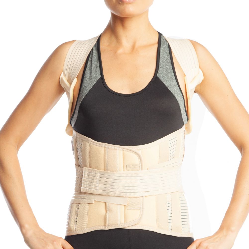 Мягкие подушки сзади и спереди обеспечивают комфортное использование. Воздушный материал обеспечивает свободную циркуляцию воздуха, отвод влаги и дыхание кожи. Две металлические корсеты анатомической формы прочно стабилизируют пояснично-крестцово-грудной отдел, а 4 гибких пластиковых корсета в области бедра защищают от болезненных и неконтролируемых скручиваний или сгибаний.