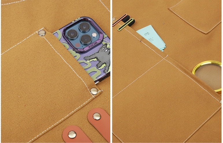 Наши фартуки Canvas изготовлены из 100% хлопкового холста с средней толщиной 12 унций для обеспечения долговечности и простой очистки. Благодаря использованию передовых водонепроницаемых технологий, вода может вытекать из фартука, не промокая, сохраняя при этом водостойкость и хорошую воздухопроницаемость.