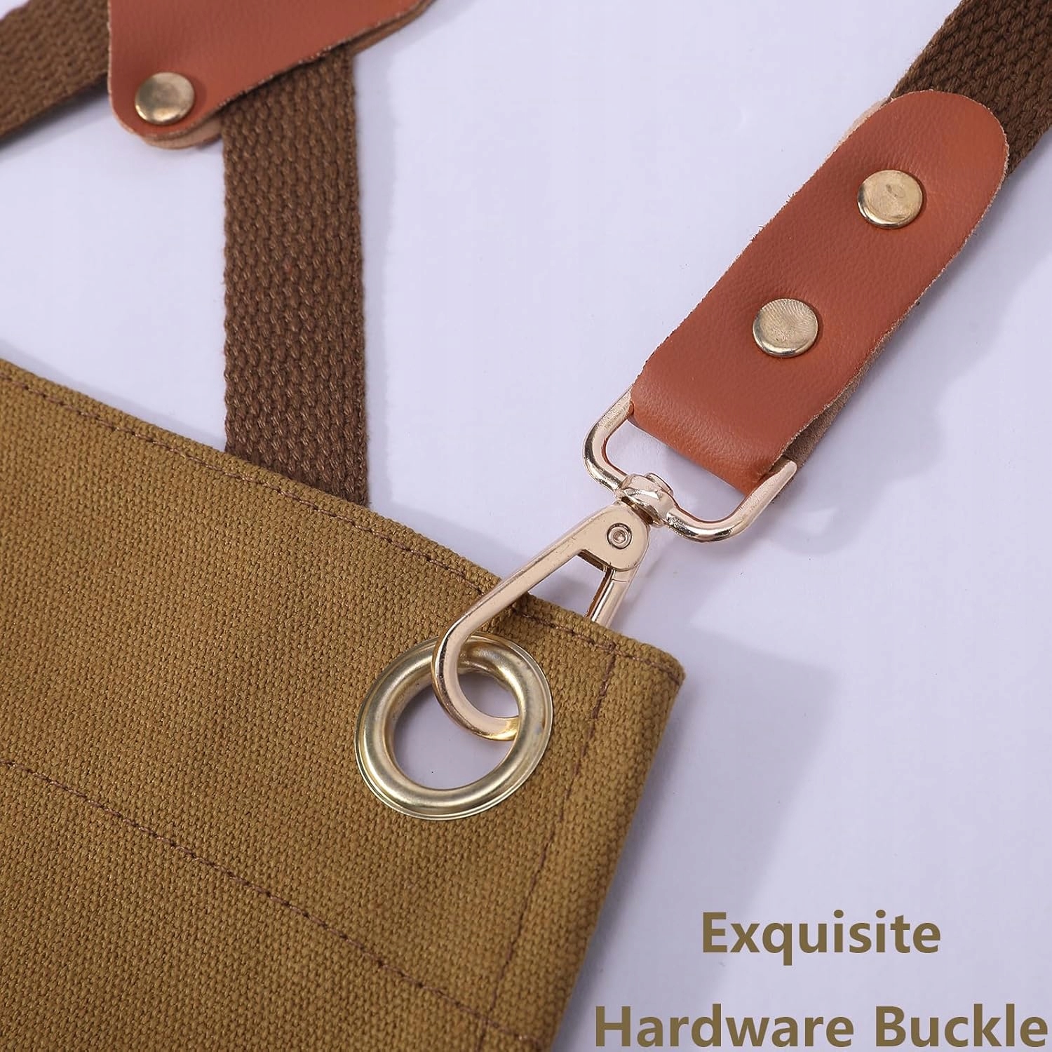 У этого кухонного фартука есть поперечная спина, которая не сжимает шею. Изготовленный из высококачественных латунных металлических крепеж и искусственной кожи, фартук этого повара имеет кожаные пряжки сзади, чтобы защитить два съемных плечевых ремешка для легкого нанесения и взлета. Фартук полностью сделан вручную, что обеспечивает долгосрочный комфорт.