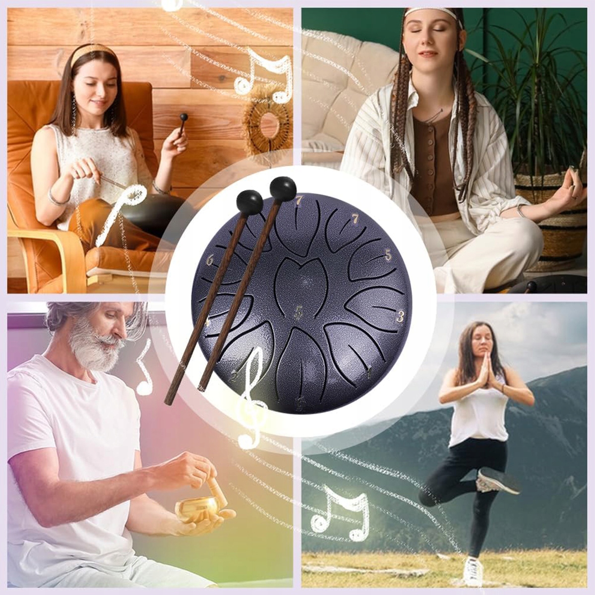 Стальной барабан издает гармоничные звуки, обладающие расслабляющими свойствами. Эти звуки поддерживают процессы медитации, помогая вам достичь состояния глубокого расслабления и внутреннего покоя. Регулярная игра на барабане поможет снизить стресс, улучшить самочувствие и общее качество жизни. Звуки барабана гармонируют с естественным ритмом тела, что делает их идеальными для занятий йогой, медитации или просто для того, чтобы уделить время себе.