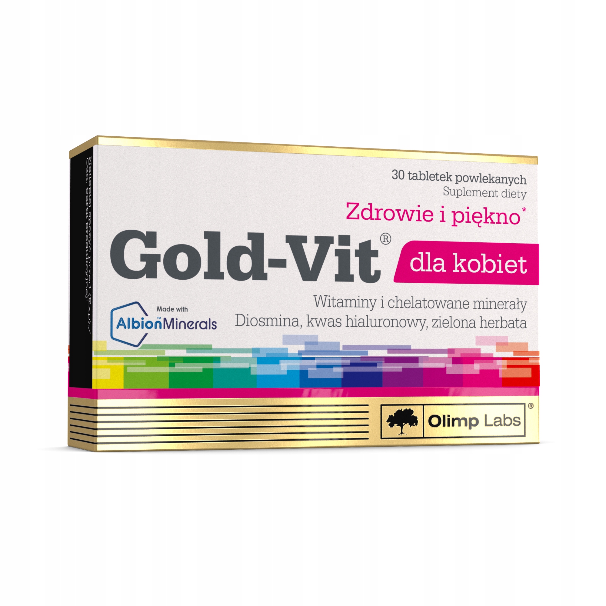 Gold-Vit для женщин представляет собой состав витаминов и минералов, в основном в форме хелатов с высокой поглощенной аминокислотой альбиона, облегчая покров основного потребности в организме женщин для необходимых микроэлементов. Формула была дополнена соевыми изофлавонами, экстрактом зеленого чая, гиалуроновой кислотой и диосмином, а также экстрактом черного биоперинового перца.