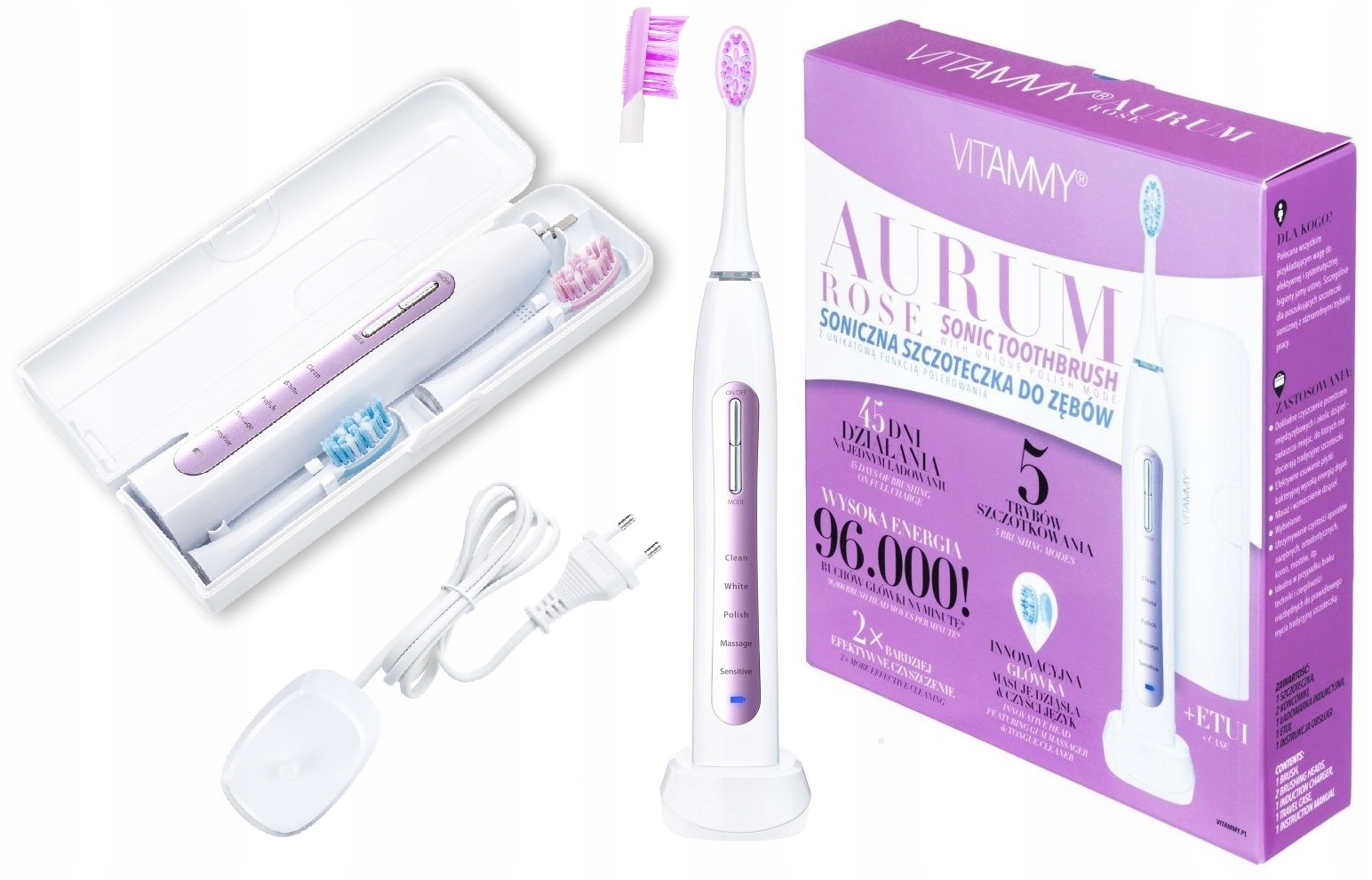 Зубная щетка Vitammy Aurum Rose Sonic отличается исключительной скоростью – до 96 000 вибраций звуковых волн в минуту.