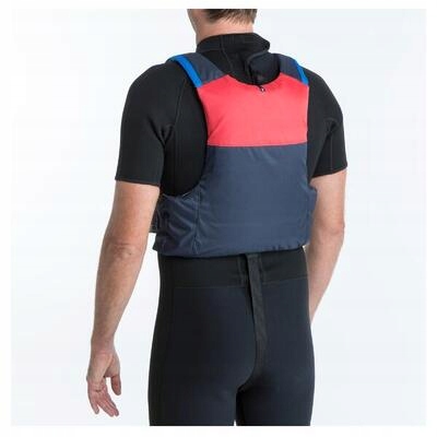 Короткий крой жилета и конструкция из нескольких панелей вспененного полиэтилена обеспечивают очень малый вес, поэтому жилет не ограничивает свободу плавания. Пластиковые пряжки (расположенные на каждой стороне жилета) предназначены для замены при необходимости. Ремешок в паху (который отсутствует в черном жилете) позволяет инструкторам и руководителям парусных клубов носить этот жилет в своих клубах.