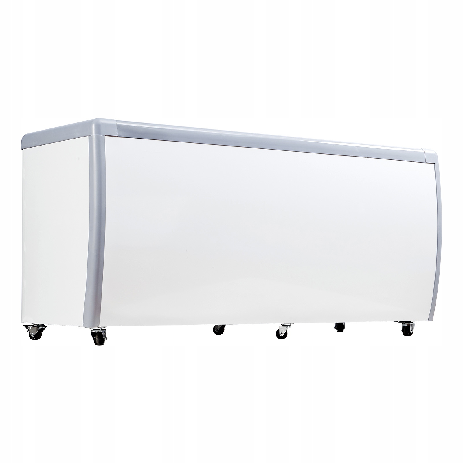 Большой демонстрационный контейнер для демонстрации различных вкусов мороженого. Прозрачные стеклянные двери и светодиодное освещение усиливают эффект витрины.