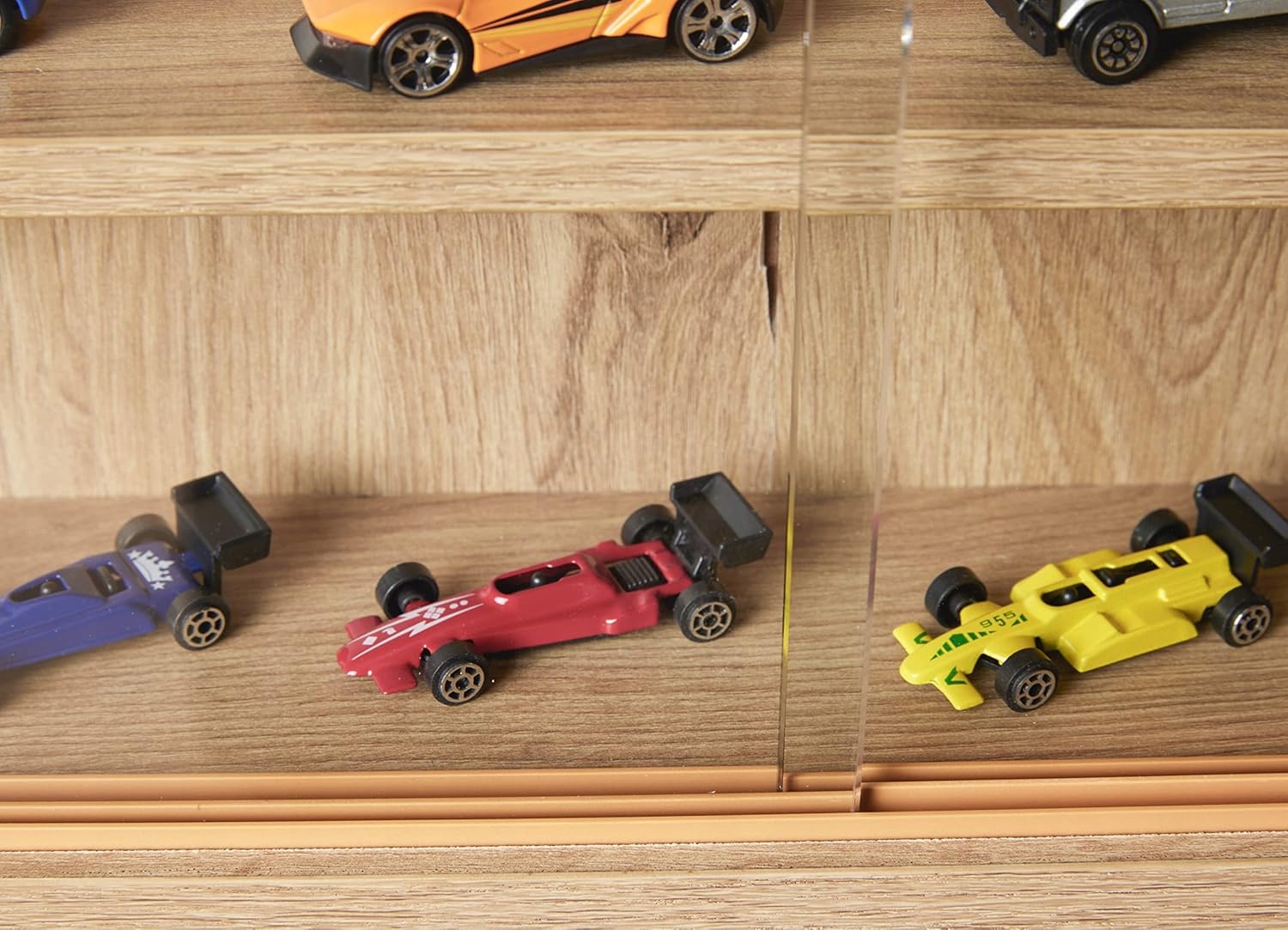 Витрина имеет четыре внутренние полки, которые можно легко адаптировать для различных предметов коллекционирования. Регулируя высоту полок, вы можете свободно организовать пространство в зависимости от размеров представленных предметов, например моделей автомобилей, статуэток или украшений.