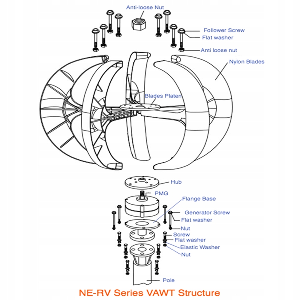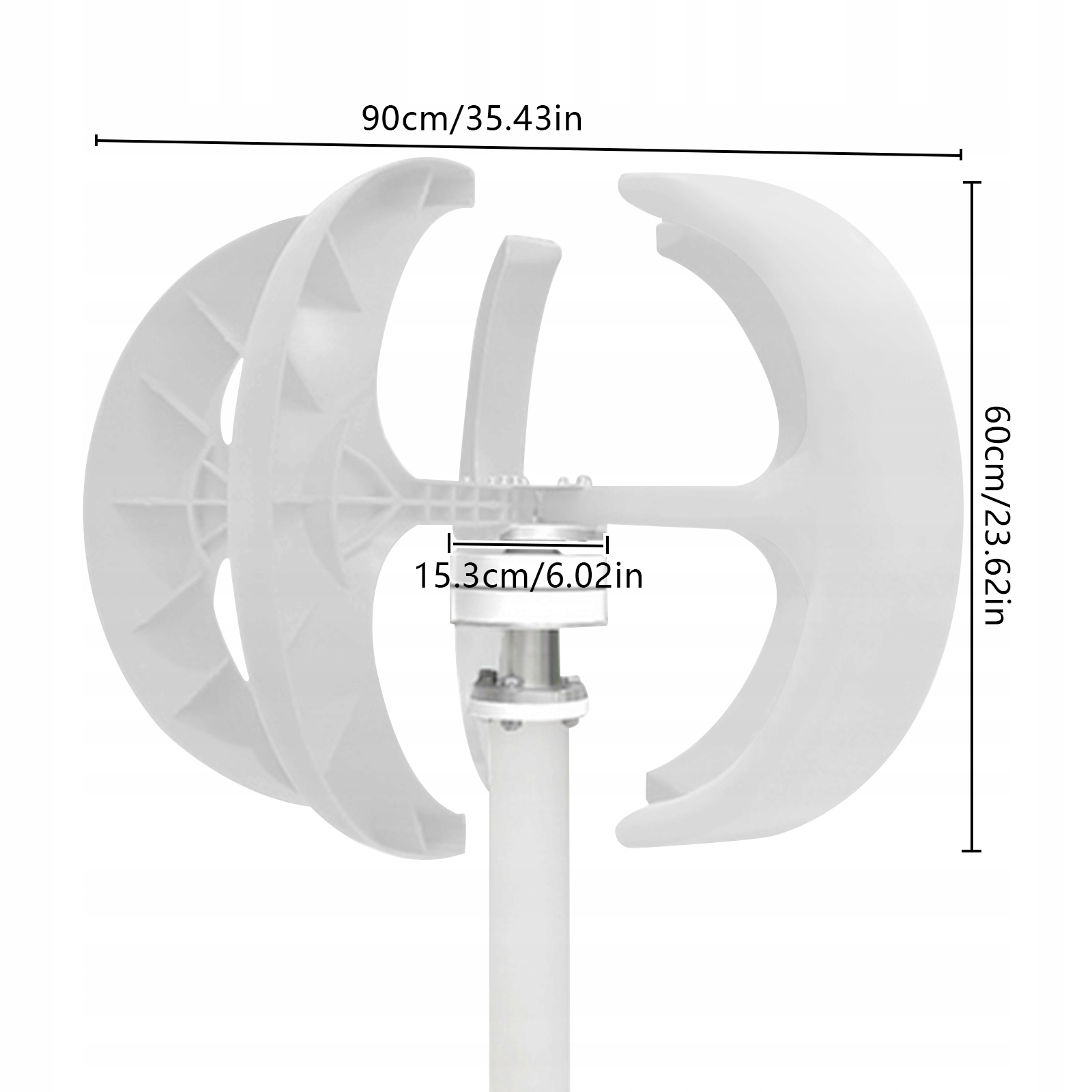 Высокая производительность: мощная стартовая скорость ветра 600 Вт, 6,56 фута/с, номинальная скорость ветра 42,65 фута/с, выживаемость скорости ветра 147,64 фута/с и пять лопастей позволяют быстро запуск и высокий уровень использования энергии ветра.