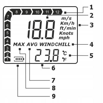 - выбор единицы измерения скорости воздуха (в зависимости от характера измерения) , вы можете выбрать: километры или мили в час, футы в минуту, метры в секунду, узлы),