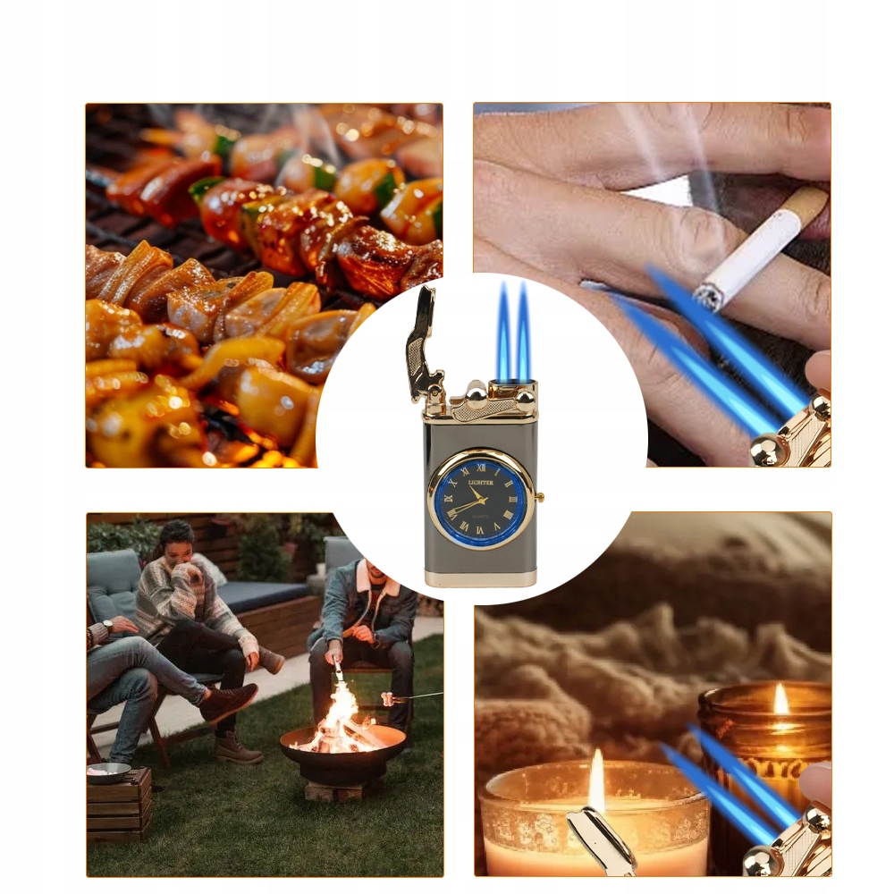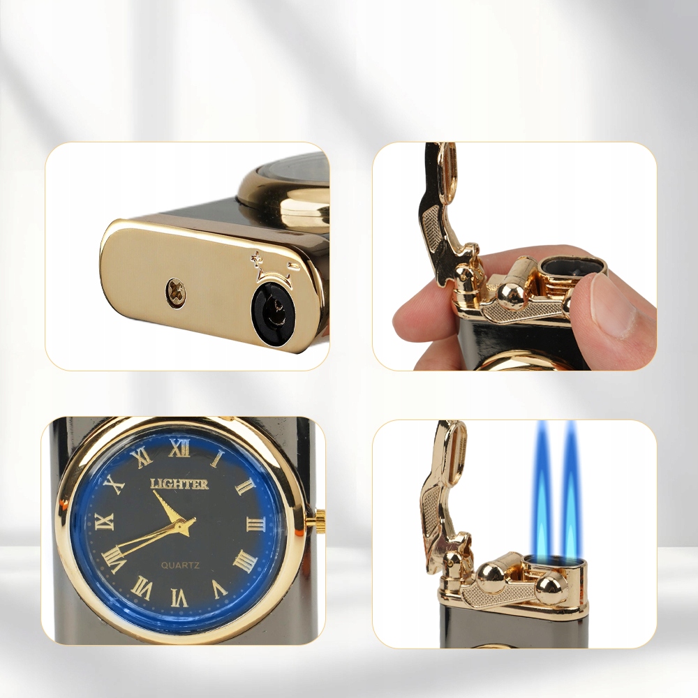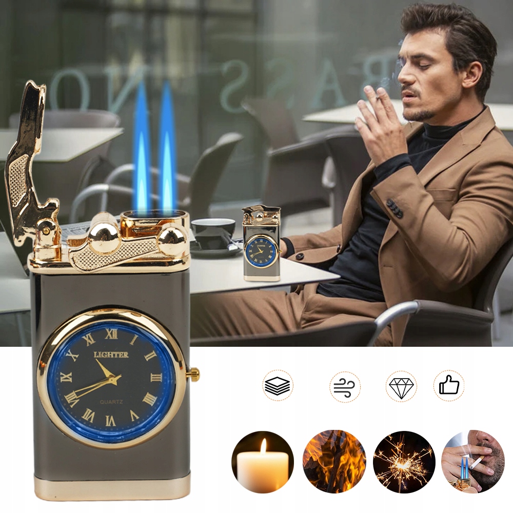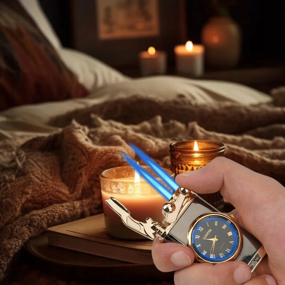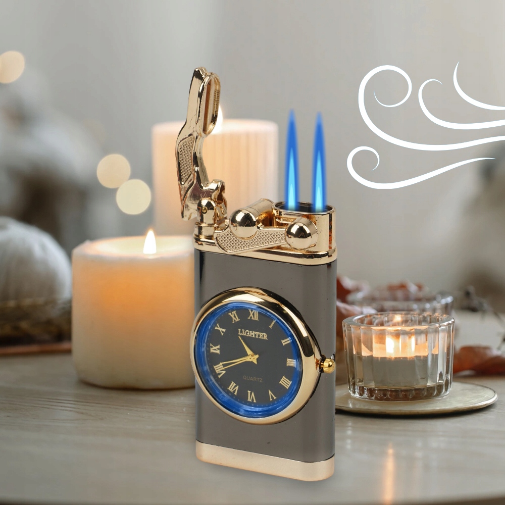 Эта универсальная зажигалка сочетает в себе функции зажигалки и часов, что делает ее подходящей как для использования в помещении, так и на открытом воздухе.
