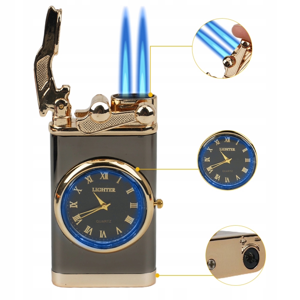 Эта металлическая ветрозащитная зажигалка изготовлена из высококачественного цинкового сплава, что придает ей уникальный и элегантный внешний вид. Двойная струя пламени не только зажигает, но и безопасно и надежно отображает время.