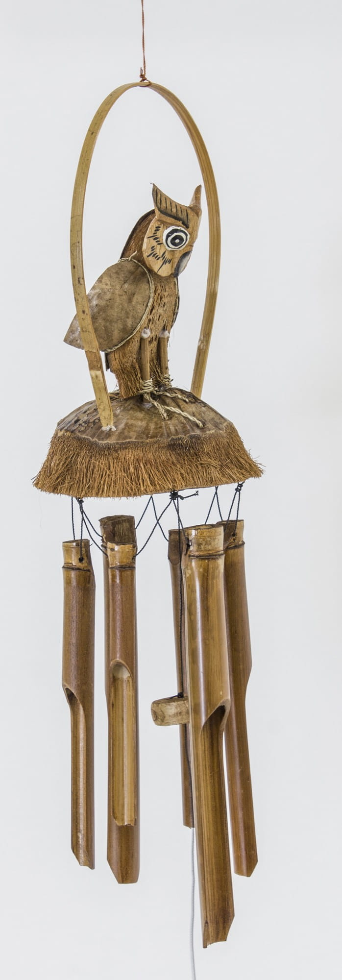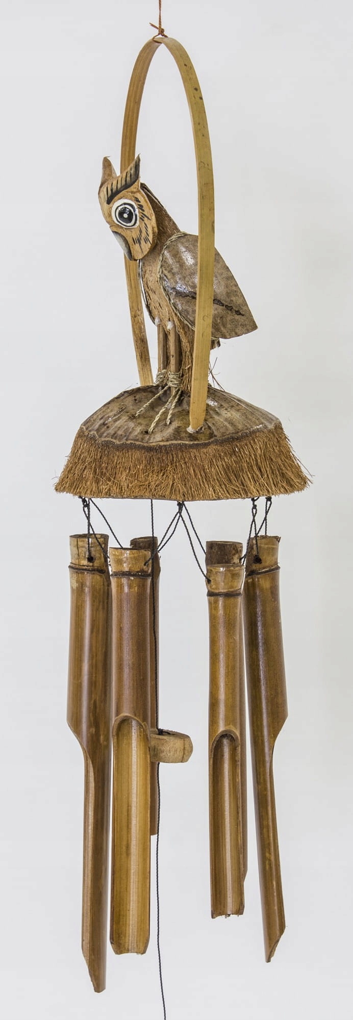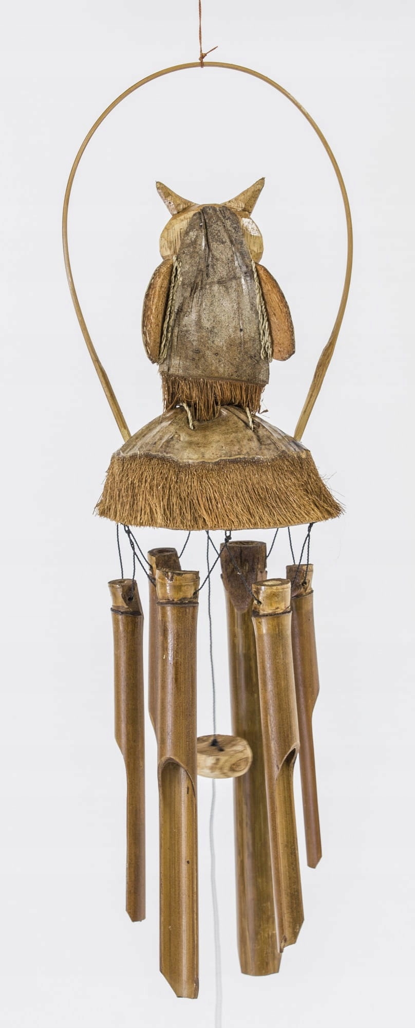 Ветряной гонг в виде совы из бамбука. Идеально подходит для террасы, балкона, беседки и т. д. Ветер издает очень приятный и расслабляющий звук, доносящийся из бамбука.
