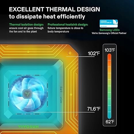 VIVOSUN AL LED 100 W z wentylatorem cyrkulacyjnym i diodami Samsung 301B