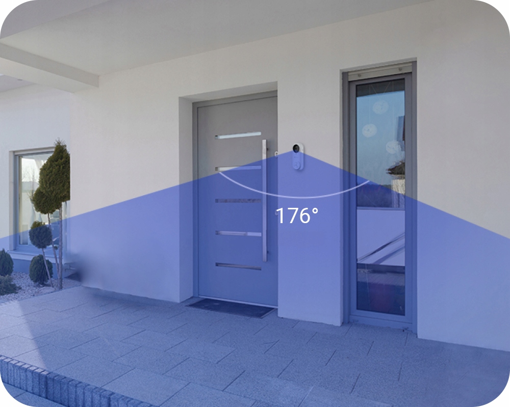 Вертикальный угол обзора DB2 в 176 градусов обеспечивает надежное видеоизображение людей, использующих дверной звонок.
