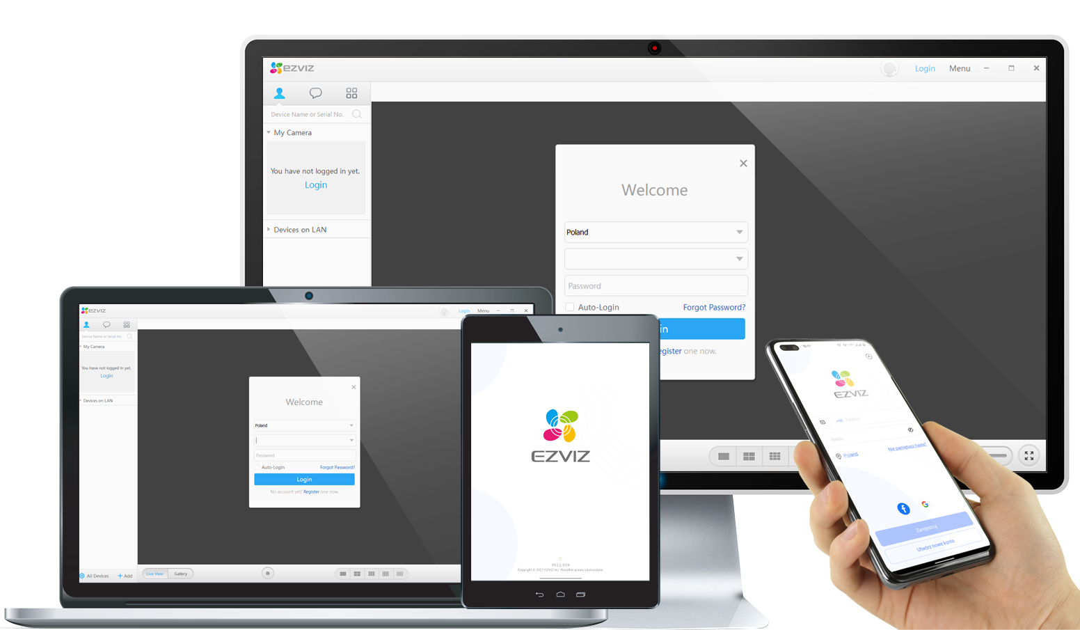 Войдите в свою учетную запись EZVIZ в приложении EZVIZ Studio на настольном компьютере или в приложении EZVIZ на мобильном устройстве.