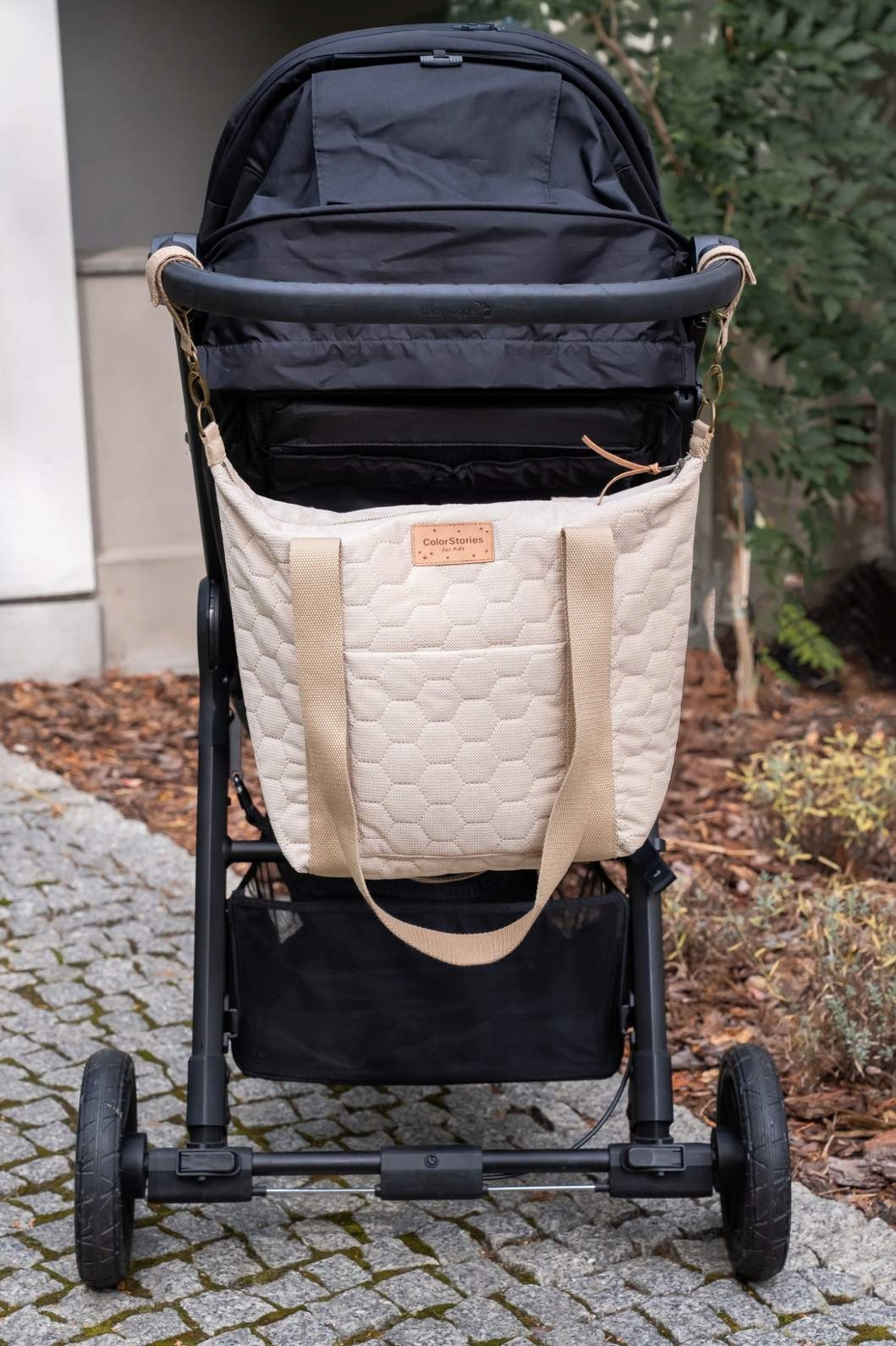 тщательно сделанный в польских швейных комнатах, он работает как сумка для мамы, так и для элегантной сумки для прогулки с ребенком.