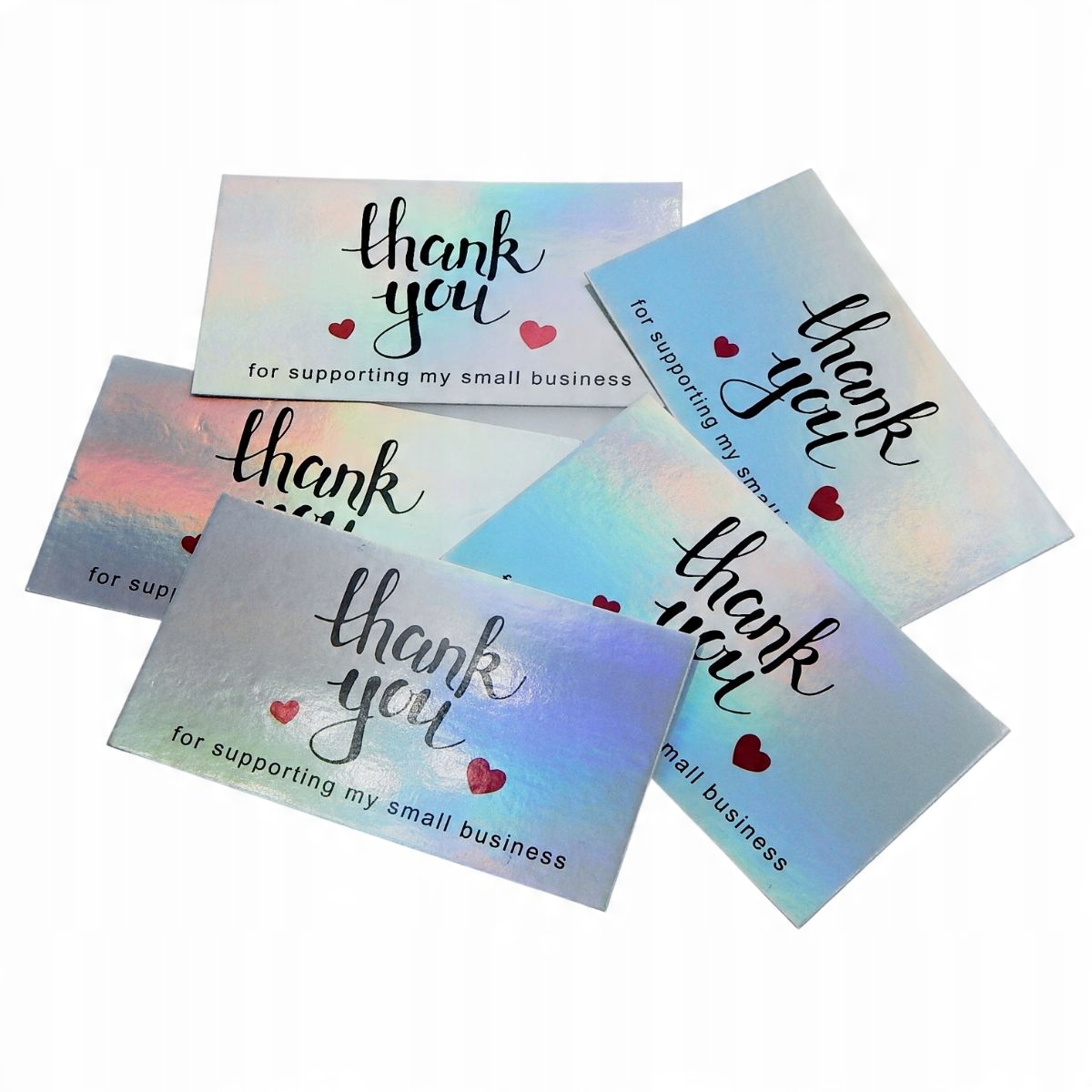 Набор из 5 серебряных визиток с надписью Спасибо за поддержку Мой малый бизнес. Визитка, покрытая мерцающей фольгой. с черным принтом декоративным шрифтом. На на оборотной стороне имеется место для штампа, рукописной надписи или отпечатка.