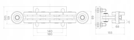 Комплект тележек с аксессуарами для рельса 80х80х5