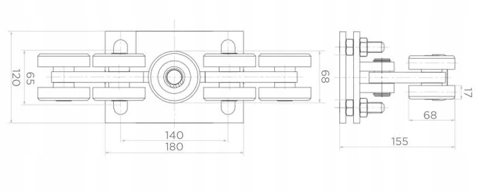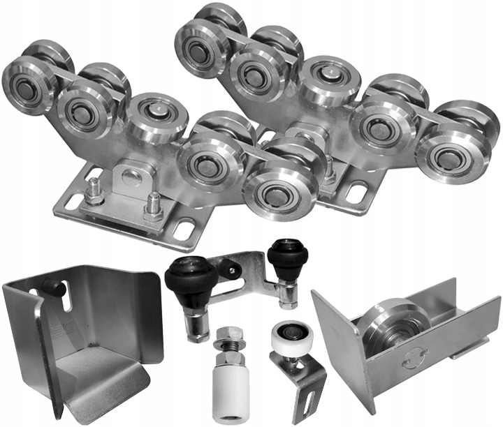 Комплект 9-роликовых тележек с фурнитурой для откатных самонесущих ворот с рейкой 80х80х5 мм
