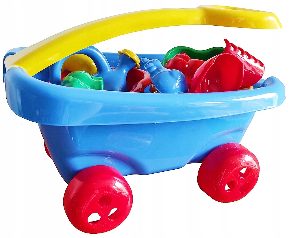 - КОЛЯСКА С РУЧКОЙ для МАЛЫША, которую можно использовать для игр в песочнице, на пляже, в саду и дома.