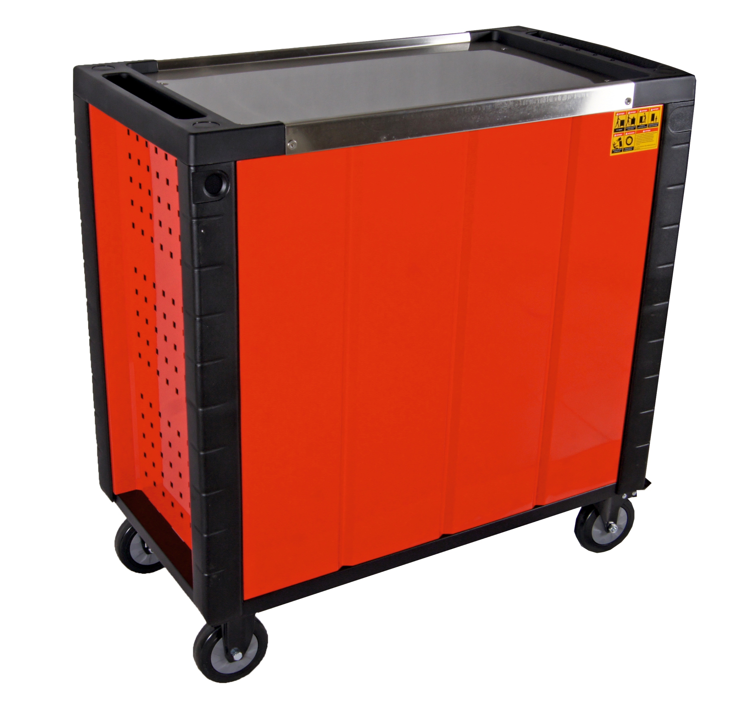 - Столешница изготовлена из нержавеющей стали, с отделениями для мелких инструментов.