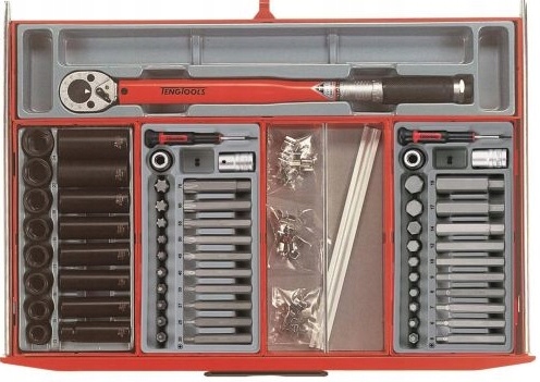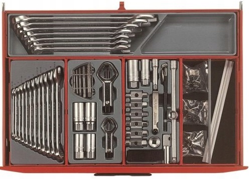- Инструменты поставляются в системе Teng Tools с 19 ящиками, состоящей из верхнего ящика для инструментов, среднего ящика для инструментов и тележки для инструментов