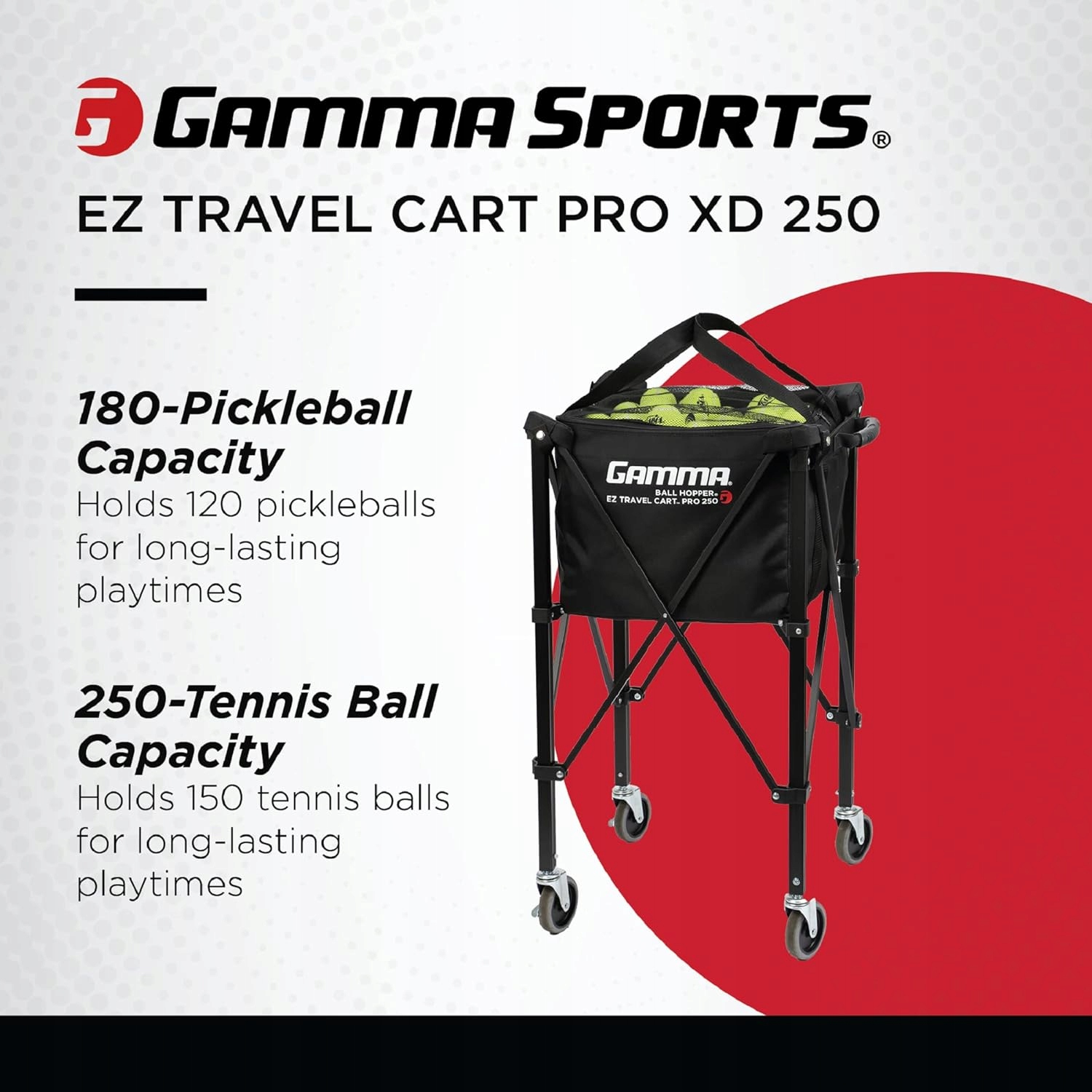 Дорожная тележка Gamma Sports EZ Pro, контейнер для мячей и сумка для переноски премиум-класса, вмещает 120 пиклболов или 150 теннисных мячей