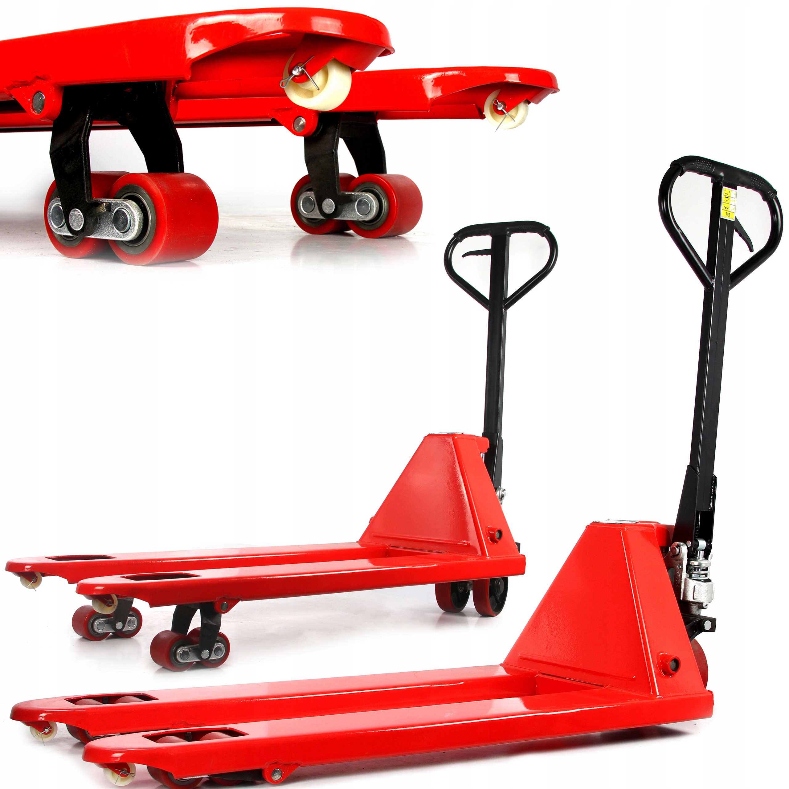 Универсальная ручная гидравлическая тележка 3Т грузоподъемностью 3Т имеет двойные ролики спереди и сзади и дополнительные обкатные колеса