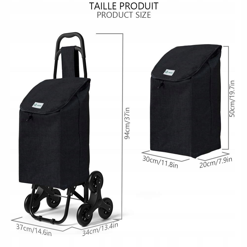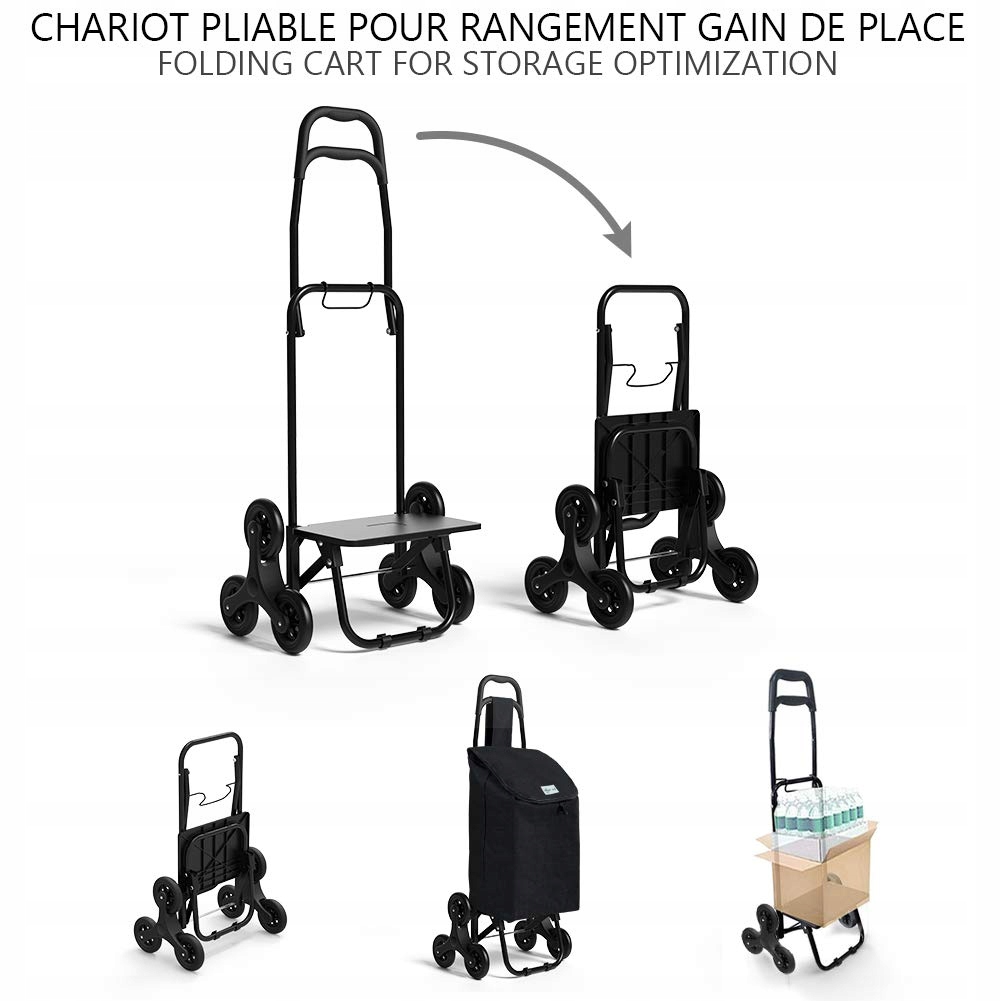 - Благодаря вращающейся конструкции с 3 колесами тележка для покупок может плавно подниматься по лестнице или преодолевать более крупные препятствия.