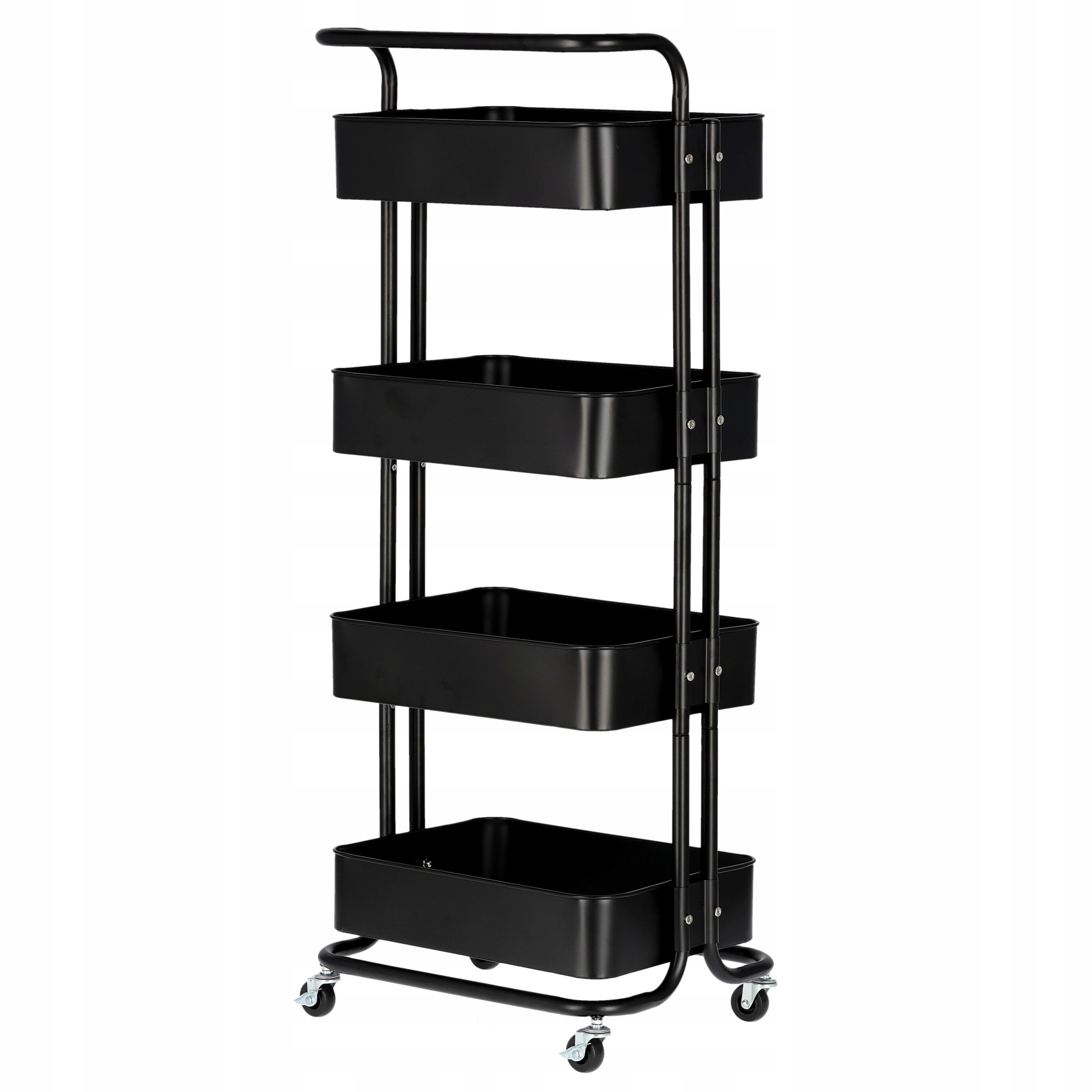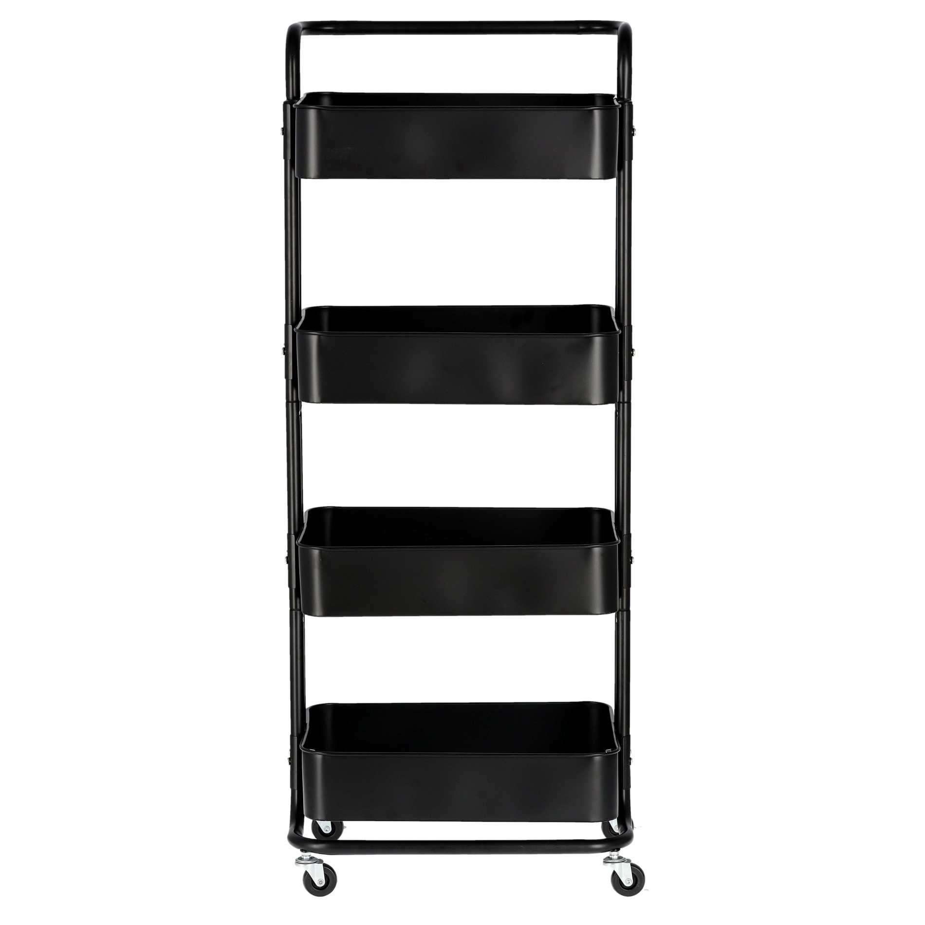 Помощник на колесиках из нержавеющей стали с порошковым покрытием. Имеет четыре корзины. Полка на поворотных (360°) колесах. Два из них имеют замок, благодаря которому коляска устойчиво стоит даже на неровной поверхности. Он имеет прочныеручки для удобной переноски.