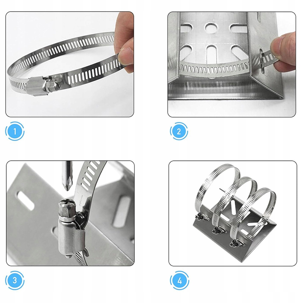 - - сборка очень проста и не требует никаких специальных инструментов или знаний, не требует бурения, просто переносите регулируемые кольца через стальную опорную плиту, прикрепите их к столбам и затяните отверткой.