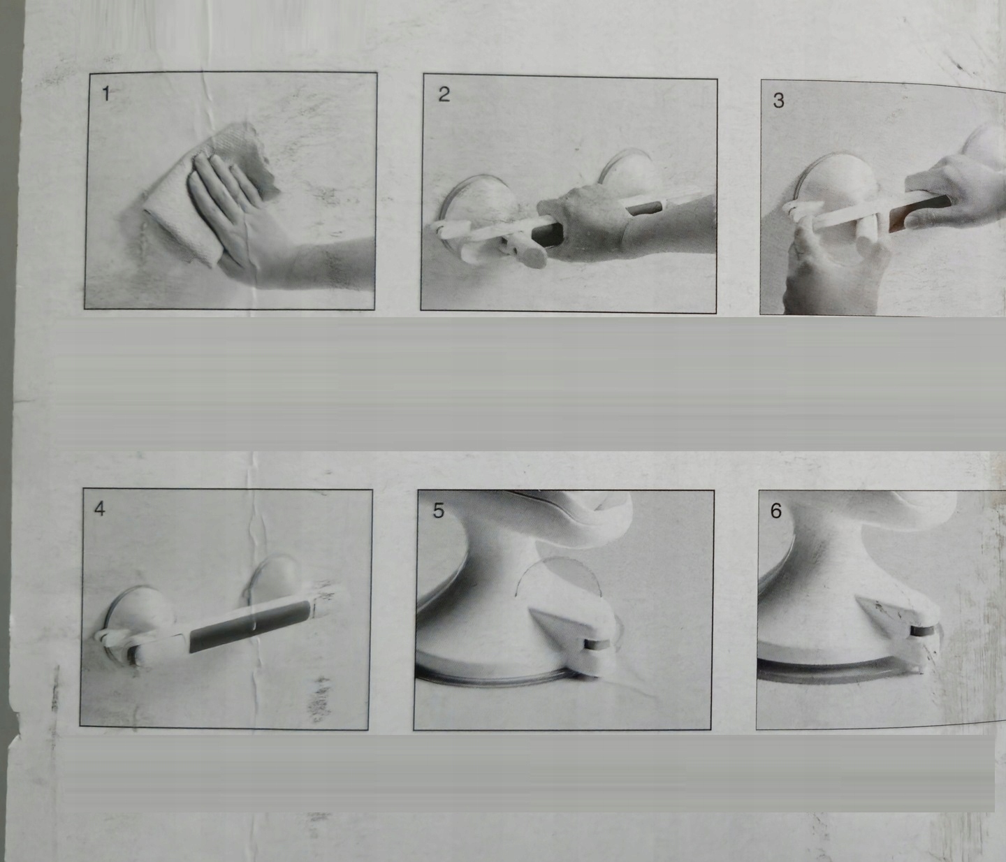 - Вы должны тщательно проверить перед каждым использованием, чтобы убедиться, что он безопасно монтирован (цвет на ручке сообщает, безопасно ли ручка, красная, плохая, зеленая - хорошо). При необходимости это должно быть прикреплено снова. Ручка может быть прикреплена с всасывающей чашкой в душе, в ванне или рядом с туалетом.
