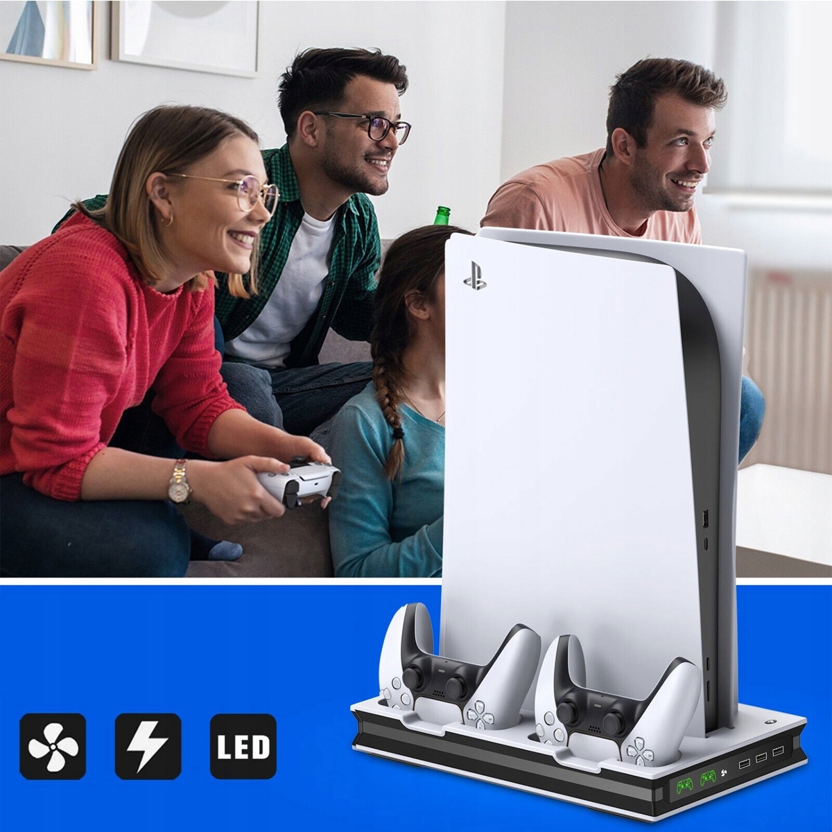 вертикальная стойка для охлаждения зарядного устройства PS5 Многофункциональная станция охлаждения USB с двойной зарядной контроллером, для PS5 UHD/ Digital Edition (не для PS5 Slim) h1>