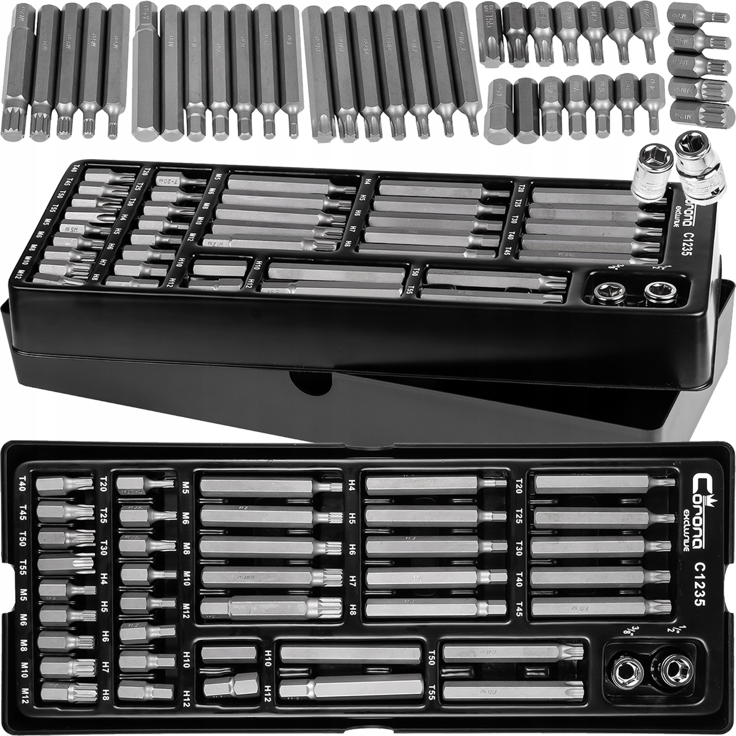 - Биты TORX длиной L = 75 мм [9 шт.]: Т20, Т25, Т30, T40, T45, T50, T55