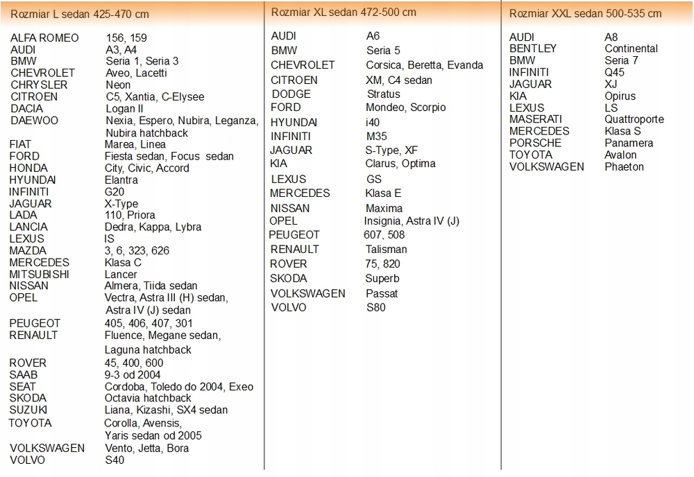 РАЗМЕР XL - < б>для автомобиля длиной 472-500 см (таблица со списком автомобилей ниже)