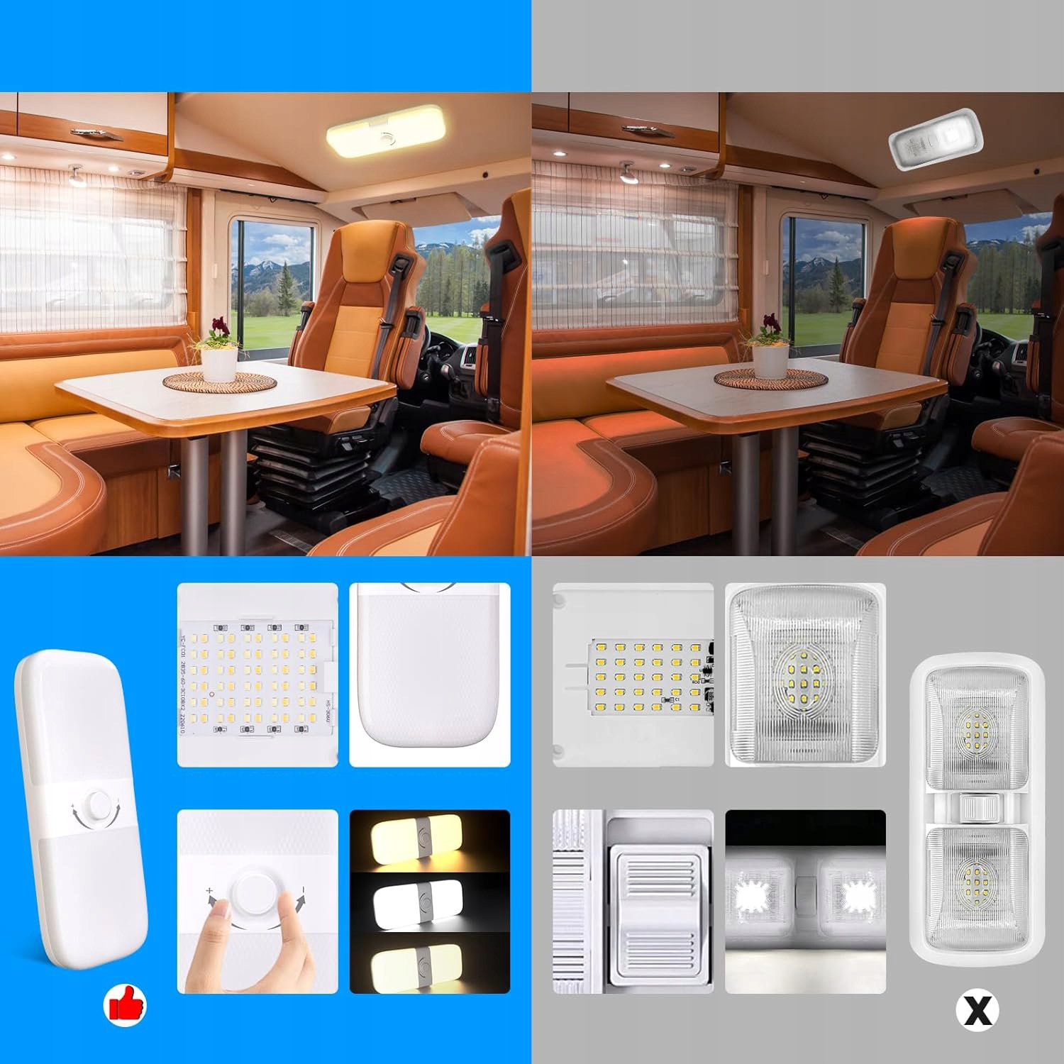 💡💡 Функция памяти - свет сохраняет ту же цветовую температуру и яркость, что и недавно, и вы не донете Не нужно сбросить его при следующем переключении; Ночная лампа: В переключении мы построили управляющую лампу, так что вы можете легко найти ее в темноте ночи. K, теплый свет, теплый белый свет, холодный свет, вы можете выбрать правильный режим света в соответствии с вашими потребностями для создания другой атмосферы. - 120 светодиодных чипов, регулируемая мощность 1 -10 Вт, макс. Освещение внутренней части светодиодного каравана изготовлено из пластиковых электронных компонентов + ПК, мягкого света, не слепым, не повреждает глаза. Встроенный переключатель может быть повернут для настройки яркости света, нажмите кнопку, чтобы включить свет или изменить режим света, затем нажмите и удерживайте, чтобы выключить ее
