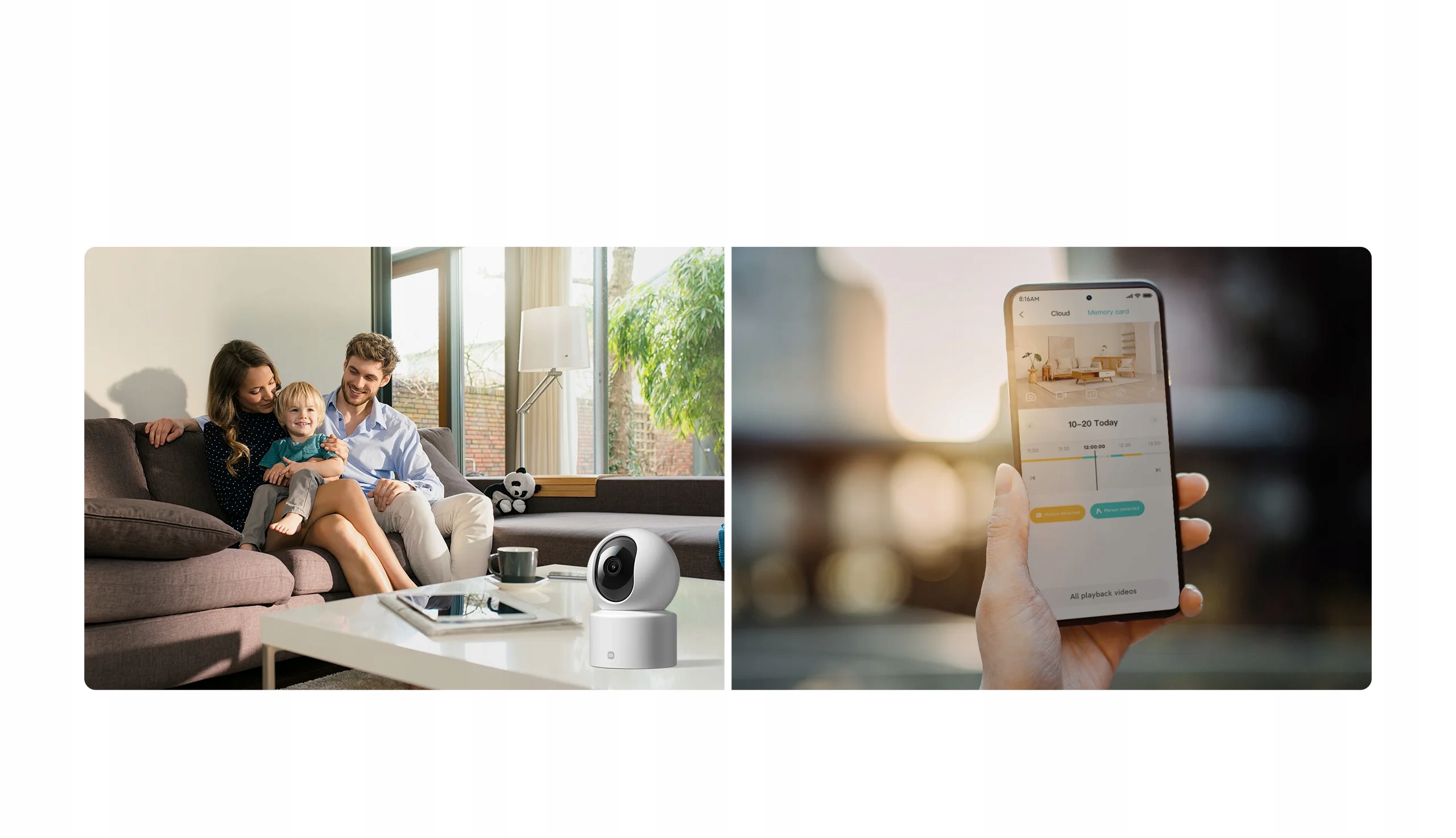 Благодаря встроенному динамику большого диаметра с отдельной звуковой камерой и микрофону с интеллектуальным шумоподавлением камера обеспечивает громкие и четкие голоса во время удаленных разговоров с членами вашей семьи.