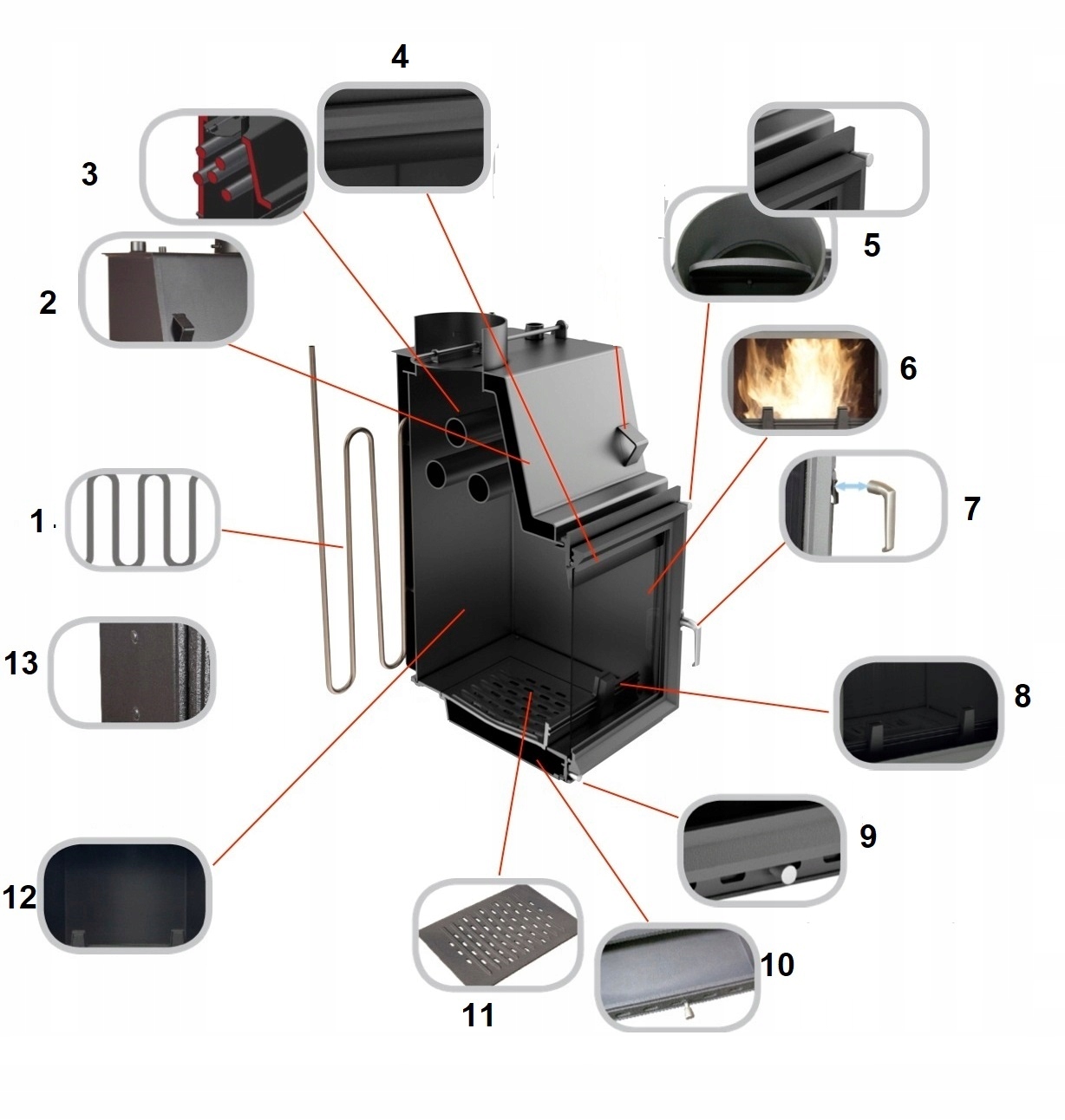 Каминная топка с водяной рубашкой и заслонкой MAJA 12 со змеевиком, мощность 3,5-10 кВт