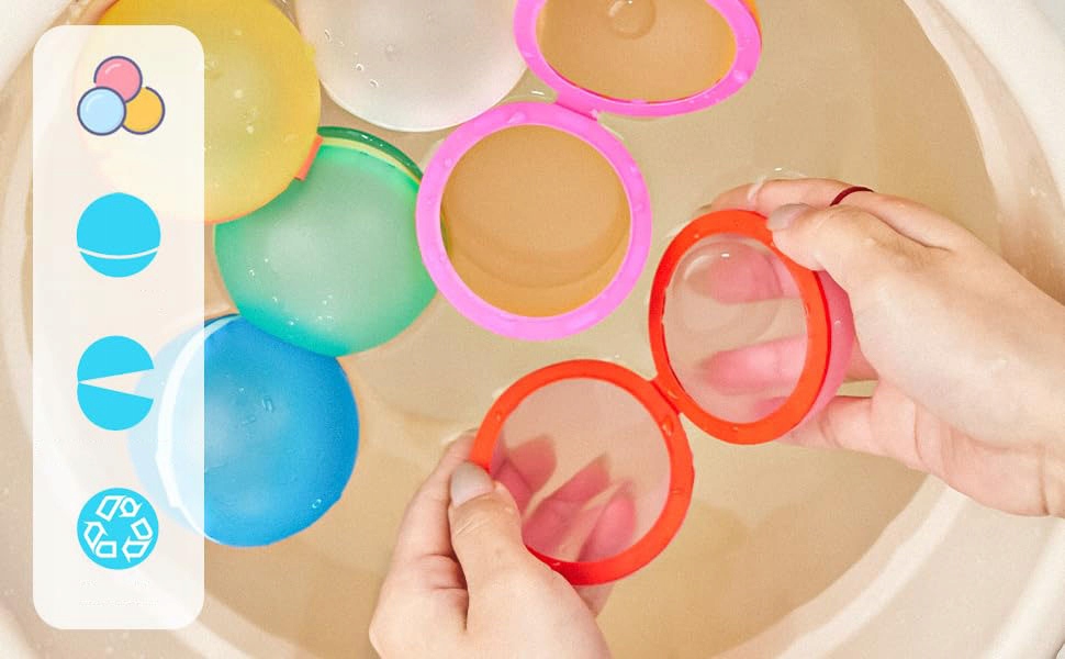 Эти многоразовые водяные бомбочки изготовлены из высококачественного силикона, нетоксичного, безвредного и не имеющего запаха. Поверхность силиконовой водяной бомбы мягкая и гибкая, ее нелегко сломать, и ее можно использовать повторно сотни раз.