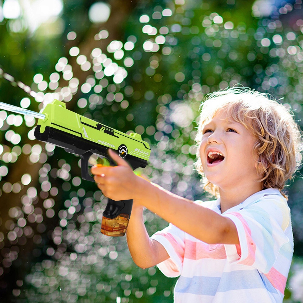 💧💧automatic Water Pistol с одной кнопкой: благодаря съемке одного прикосновения этого электрического водяного пистолета, вам никогда не придется нажимать вручную! Каждое тяга для триггера запускает мощный индивидуальный взрыв воды с беспрецедентной точностью. Водяной пистолет имеет очень большие расстояния от 26 до 32 футов, в этот жаркий летний день борьба с захватывающим огнестрельным оружием с друзьями или детьми!