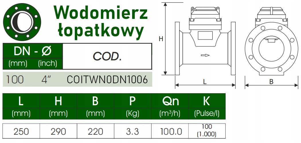 Водомір поливний - крильчатий - DN100 - 100м³/год