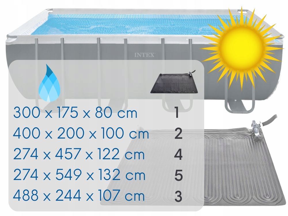 Коврик повышает температуру на 3-5 градусов Цельсия в зависимости от погодных условий. Он совместим со всеми насосами Intex и Bestway с выходным отверстием для воды 32 мм и 38 мм. Он изготовлен из высококачественного материала, обеспечивающего отличную устойчивость к погодным условиям.