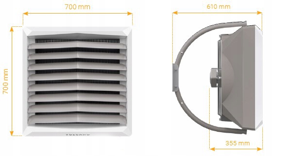 4. Максимальный воздушный поток без потерь.Точно подобранный корпус вентилятора и специально разработанный диффузор обеспечивают равномерное распределение скорости воздуха в теплообменнике, гарантируя низкое сопротивление потоку и полное использование мощности нагревателя.