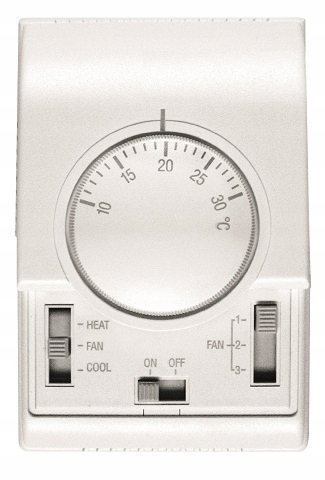 - Позволяет выбрать одну из трех скоростей вентилятора и позволяет управлять приводом клапана в зависимости от температуры окружающей среды.