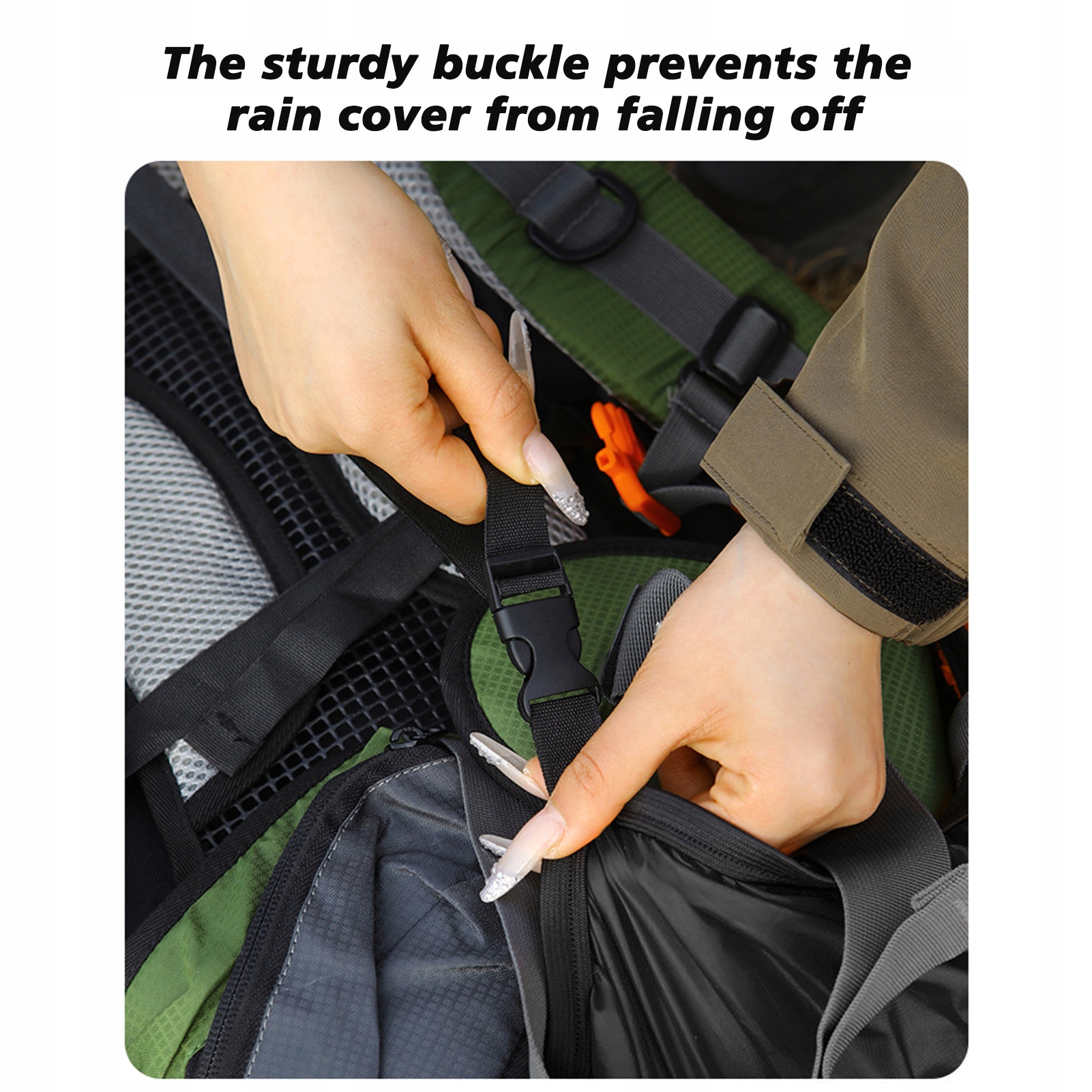5. Простота в использовании: надеть дождевик очень просто! Затем натяните его на рюкзак, закрепите резинкой и вуаля! Мгновенная защита от дождя. Это быстро и экономит драгоценное время.