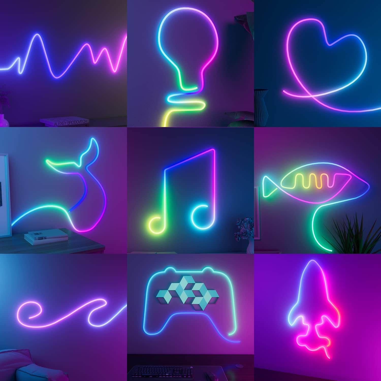 Откройте для себя новый творческий способ освещения домашнего пространства с помощью неоновых светодиодных лент. Гибкая гирлянда RGBIC с прочным силиконовым внешним покрытием и ярким светом. Раскройте свой творческий потенциал.